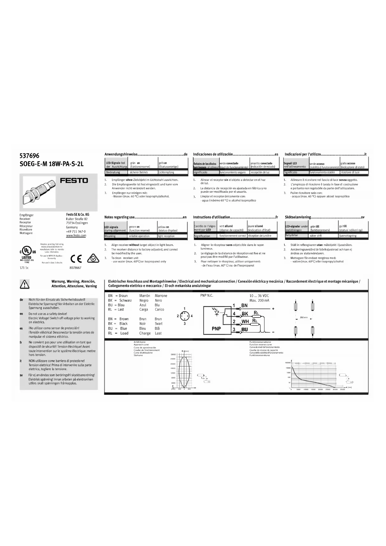 SOEG-E-M18W-PA-S-2L - Recepteur Festo - Notice d'utilisation et mode d'emploi gratuit
