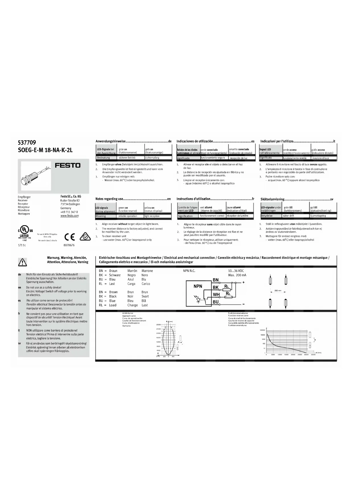SOEG-E-M18-NA-K-2L - Recepteur Festo - Notice d'utilisation et mode d'emploi gratuit