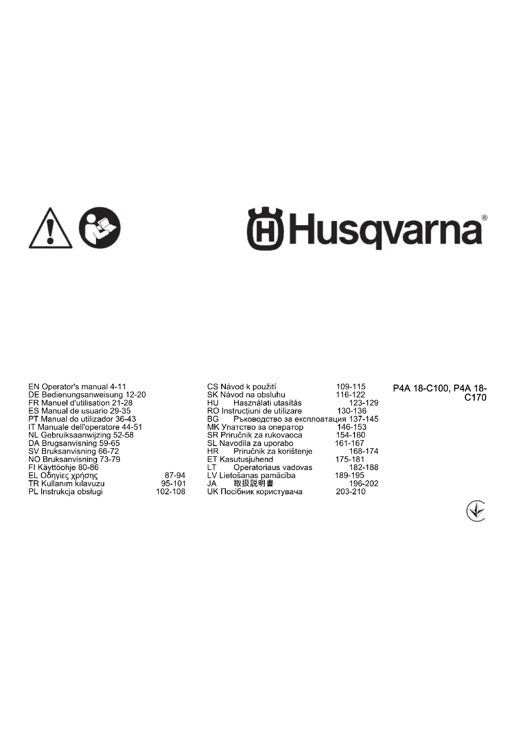 Retrouvez gratuitement la notice de l'appareil Aspire P4A 18-C170 HUSQVARNA au format PDF.