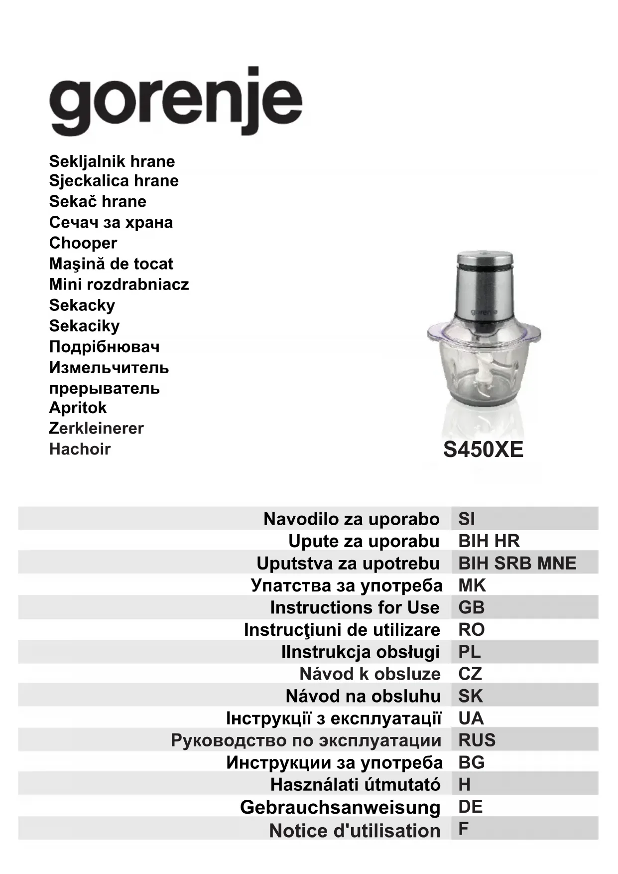 S450XE - Robot ménager GORENJE - Notice d'utilisation et mode d'emploi gratuit