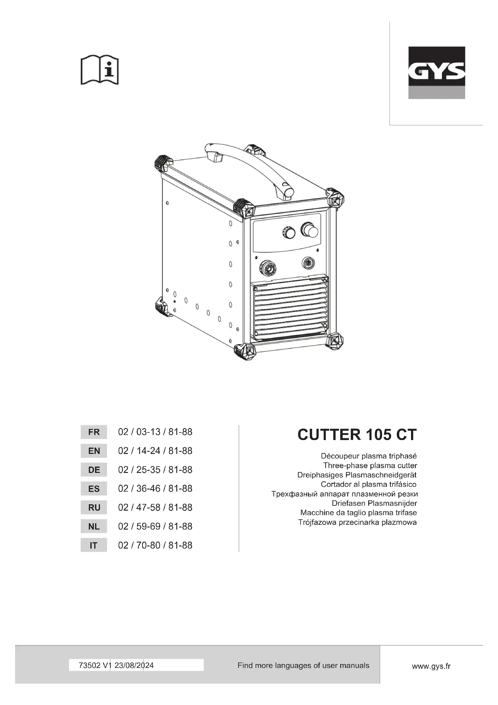 Retrouvez gratuitement la notice de l'appareil Cutter 105 CT GYS au format PDF.