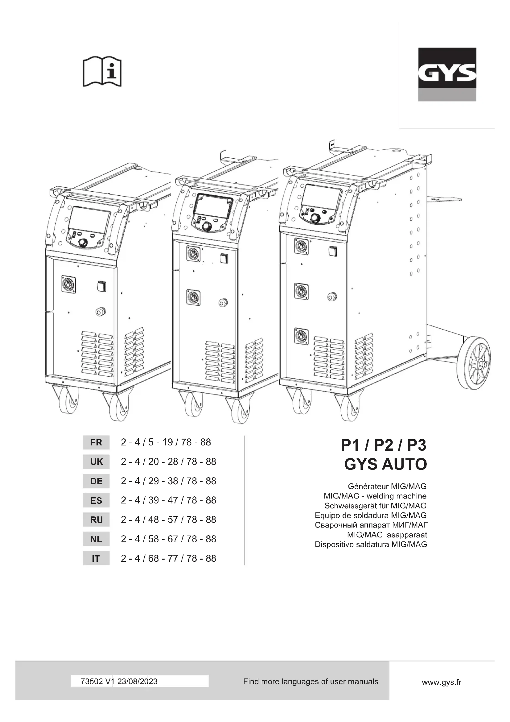 Retrouvez gratuitement la notice de l'appareil P2 Auto GYS au format PDF.