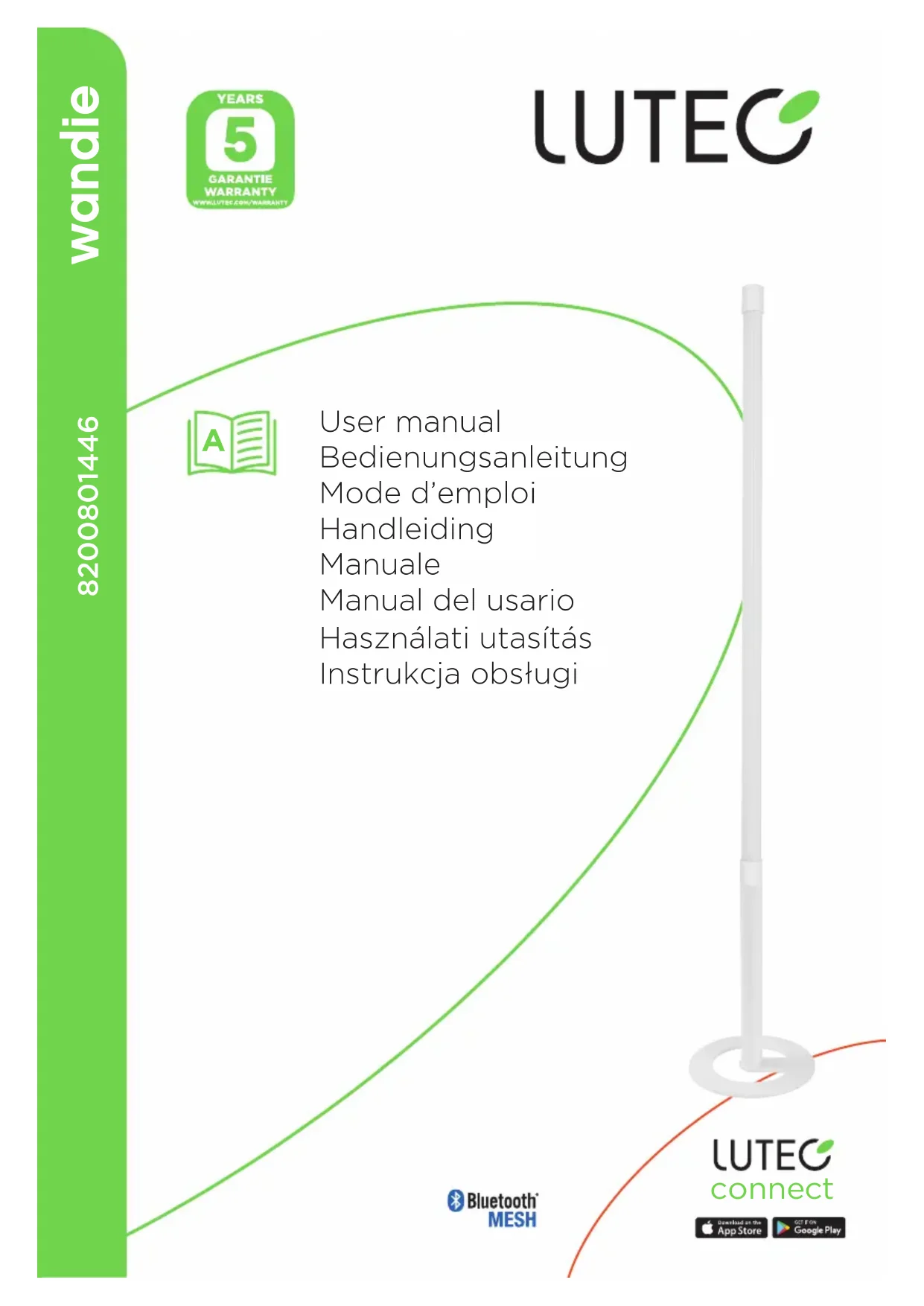 Leuchtmittel- Typ: LED (10.5W) Sicherheitsklasse II - Doppelt isoliert - Geerdeter Anschluss nicht erforderlich. IP20 Versorgungs- spannung: 220-240 V~, 50/60 Hz In Übereinstimmung mit allen einschlä- gigen EG Richtlinienanforderungen. Fingerschutz Elektroaltgeräte dürfen nicht über den Hausmüll entsorgt werden. Bitte recyclen Sie Elektroaltgeräte bei Ihrem lokalen Wertstohof oder ausgewiesenen Sammelstellen. Technische Daten0. La période de garantie des produits LUTEC est de 5 ans (2 ans pour les produits de la gamme Energie Solaire) et commence à la date d'achat. LUTEC ore une garantie anti-corrosion supplémentaire de 15 ans sur tous les luminaires extérieurs galvanisés et en résine. La garantie s'applique à tous les luminaires intérieurs et extérieurs LUTEC achetés dans l'Union européenne et/ou en Suisse et dont l'emballage est étiqueté en conséquence. Sont exclus les ampoules remplaçables, les batteries, les démarreurs et autres pièces d'usure et consommables. Les produits sont garantis contre tout défaut de matériau, de fabrication ou de conception, dans la mesure où l'état de la science et de la technique applicable au moment de la fabrication des produits est pertinent. LUTEC Europe peut soit réparer ou remplacer le produit, soit rembourser le prix d'achat au consommateur. Nous remplacerons gratuitement l'ancien produit par un nouveau produit de même modèle, type et qualité. Si le produit acheté n'est plus fabriqué au moment où nous sommes informés du défaut, LUTEC Europe fournira un produit similaire. Nous ne remboursons pas les frais de montage et de démontage, les frais de transport et autres frais de sortie, les frais de port et autres frais similaires. En outre, la garantie ne comprend pas l'indemnisation des dommages dus à l'interruption du fonctionnement, à la perte de dommages, aux dépenses inutiles, aux frais de montage et de démontage, etc. Nous ne pouvons pas être tenus responsables des dommages ou pertes liés au transport. La garantie ne s'applique que si :• Les produits sont utilisés conformément à leur destination ;• Aucun réglage/modification non autorisé n'est eectué sur le produit par un tiers ;• Les produits sont maintenus et entretenus comme indiqué dans le mode d'emploi ;