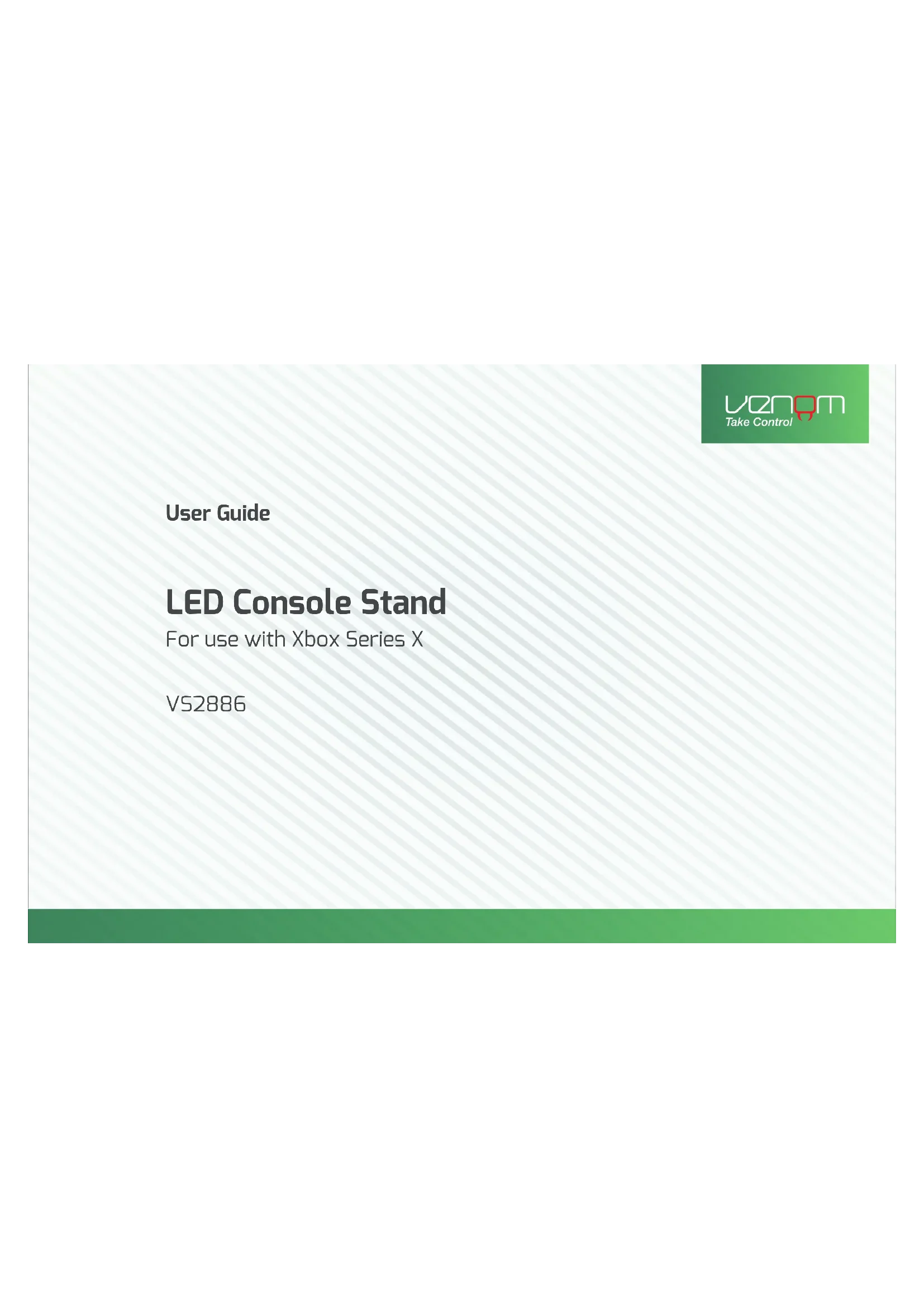 - N’utilisez pas de produits chimiques agressifs, de solvants de nettoyage ou de détergents puissants pour nettoyer l’appareil. Luminosité contrôler Mode de couleur contrôler Interrupteur d’alimentation Cable USBDEUTSCH LED-Konsolenständer Zur Verwendung mit Xbox Series X Modell-Nummer: VS2886 Benutzerhandbuch Inhalt: 1 x LED-Konsolenständer Installation und Verwendung