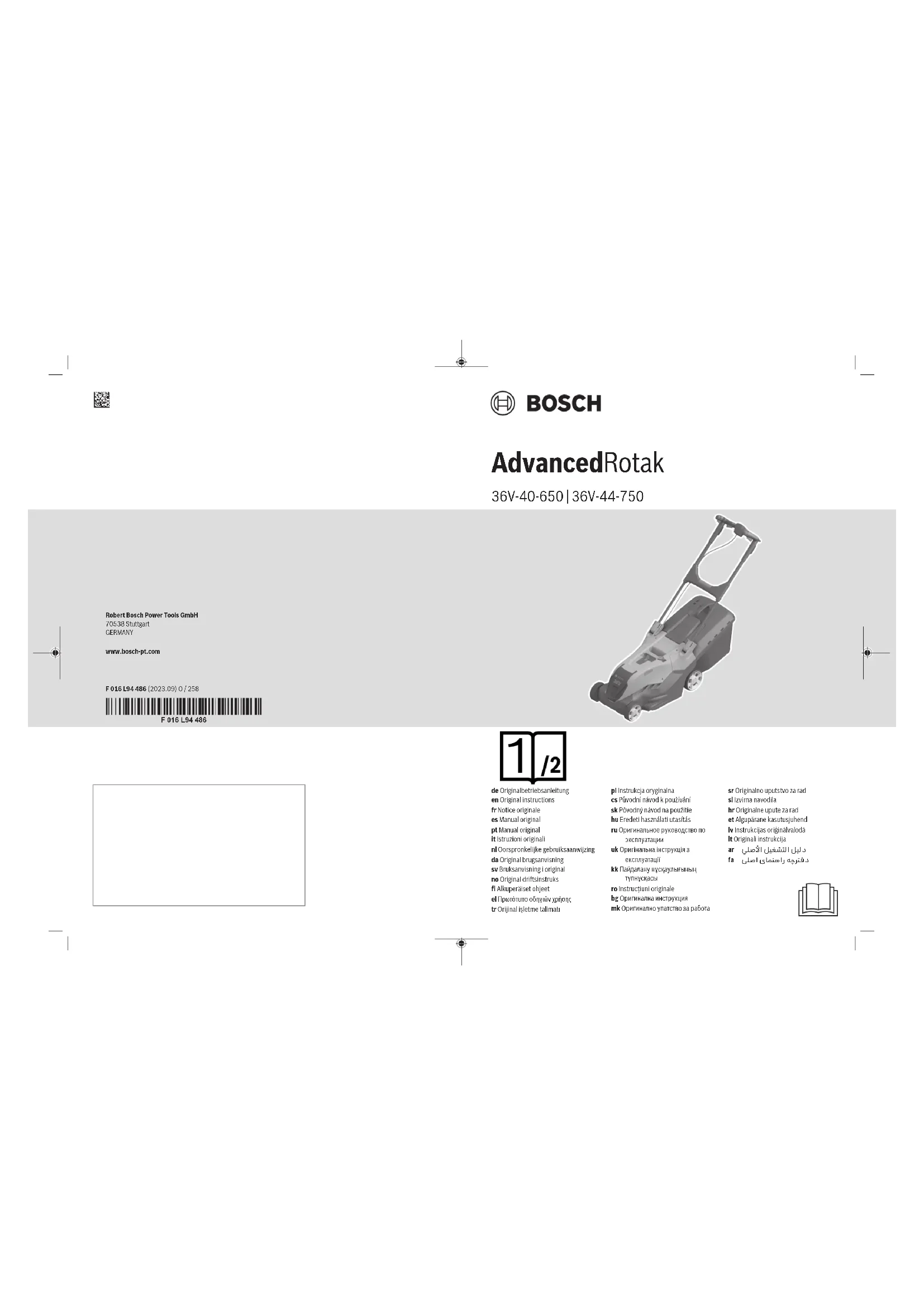 AdvancedRotak 36V-40-650 - Tondeuse à gazon BOSCH - Notice d'utilisation et mode d'emploi gratuit