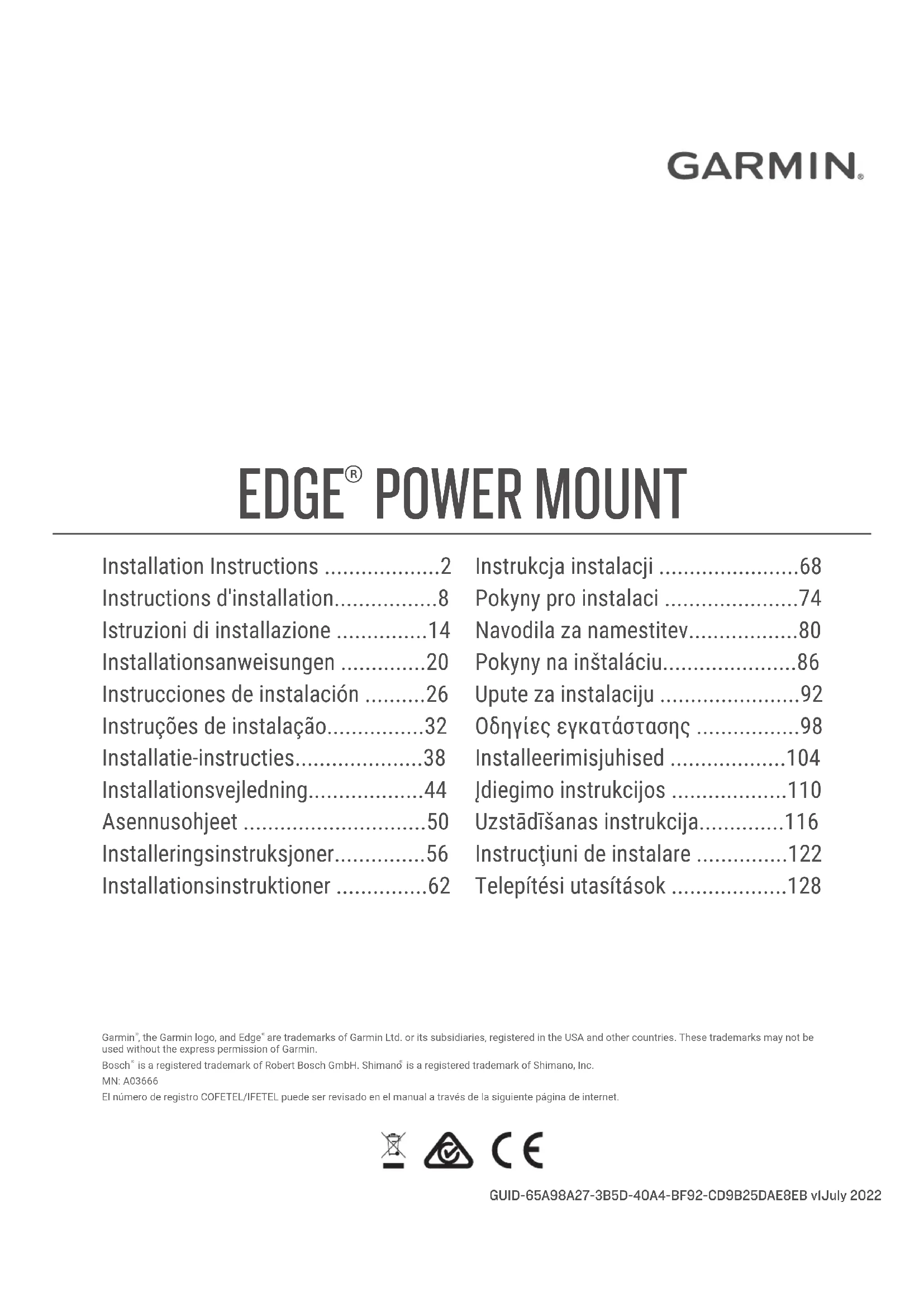 Retrouvez gratuitement la notice de l'appareil Edge Power Mount GARMIN au format PDF.