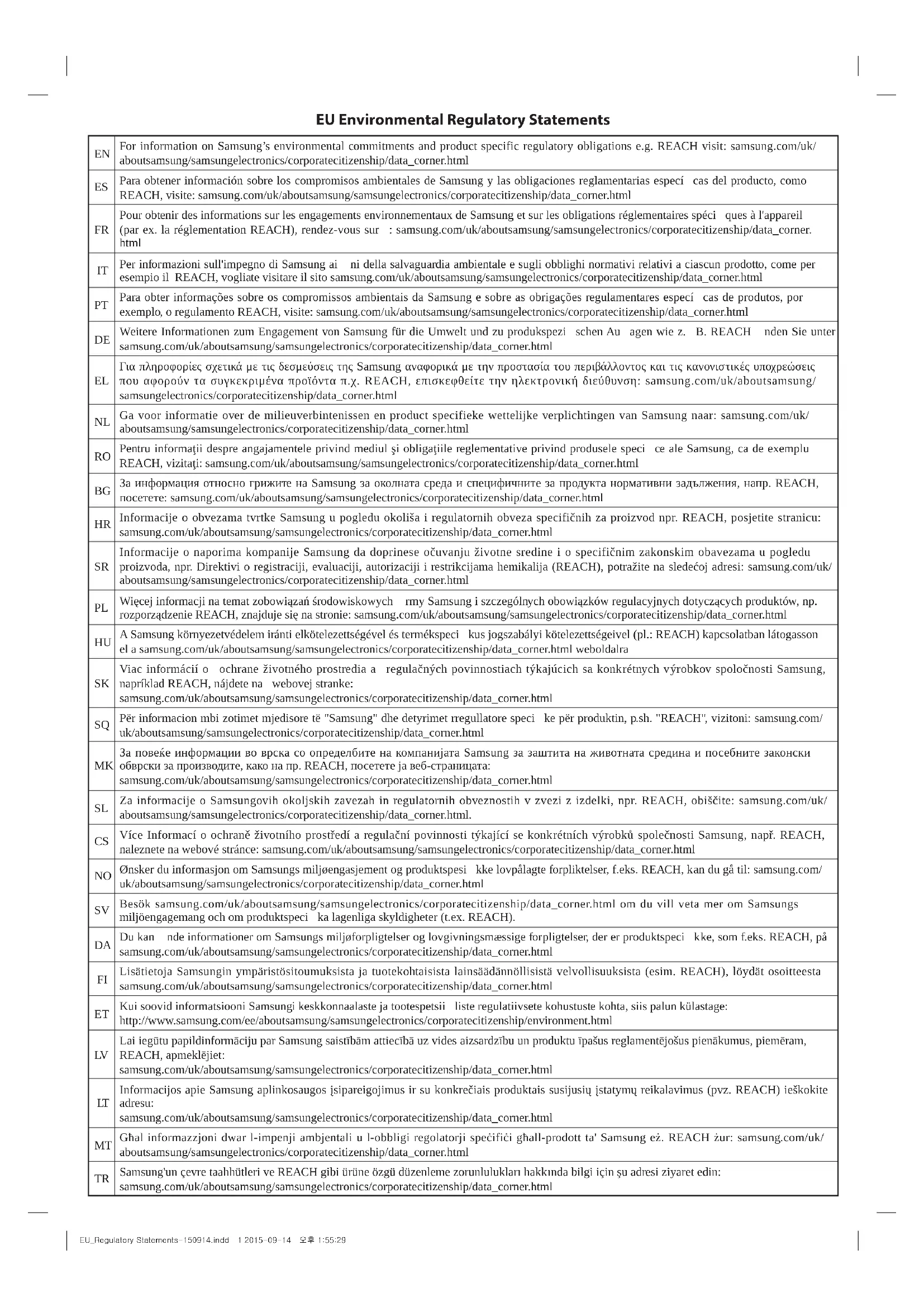 Pour obtenir des informations sur les engagements environnementaux de Samsung et sur les obligations réglementaires spéciques à l'appareil (par ex. la réglementation REACH), rendez-vous sur: samsung.com/uk/aboutsamsung/samsungelectronics/corporatecitizenship/data_corner. html