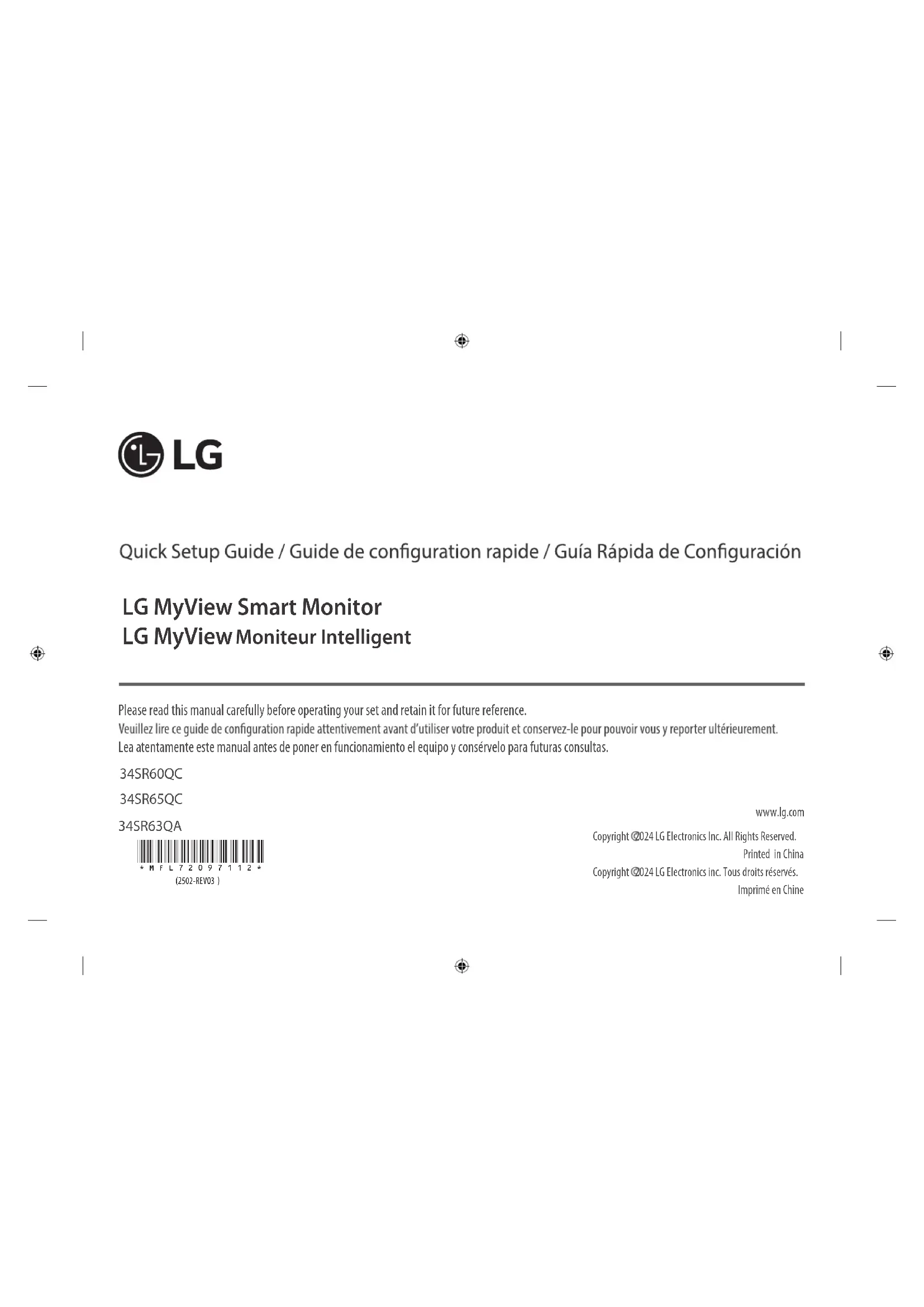 Retrouvez gratuitement la notice de l'appareil MyView 34SR60QC LG au format PDF.
