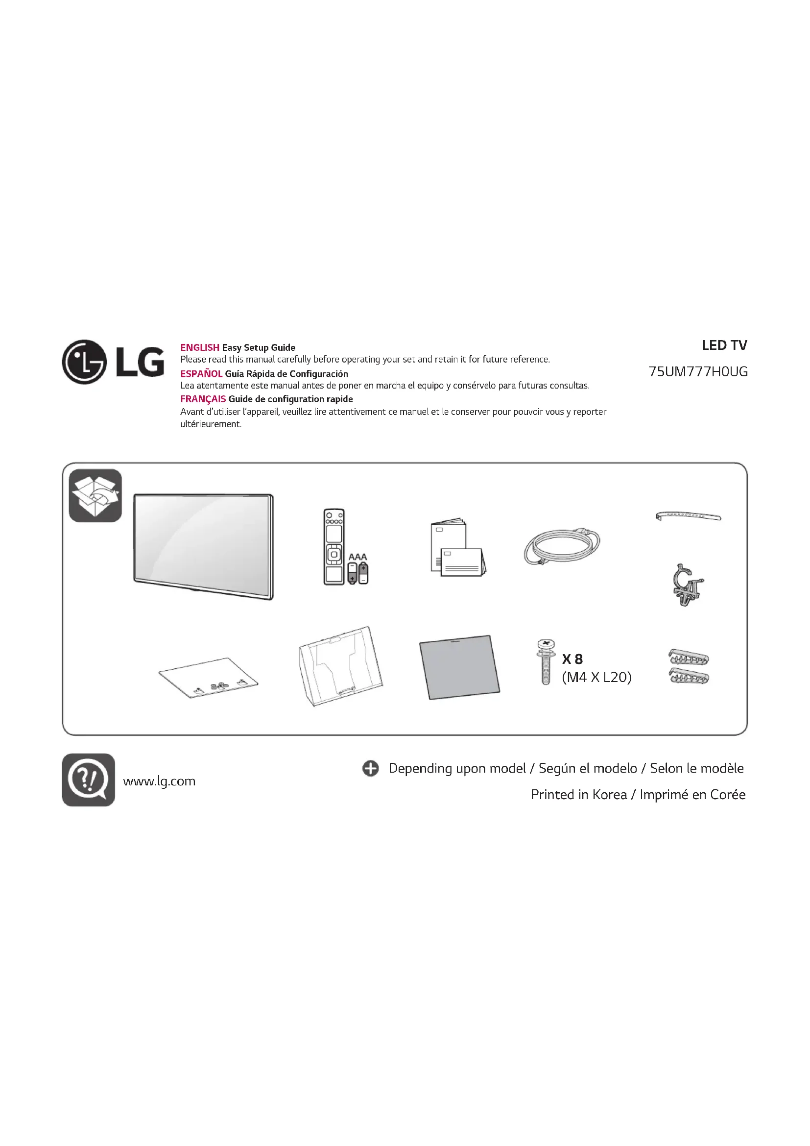 Retrouvez gratuitement la notice de l'appareil 75UM777H0UG LG au format PDF.