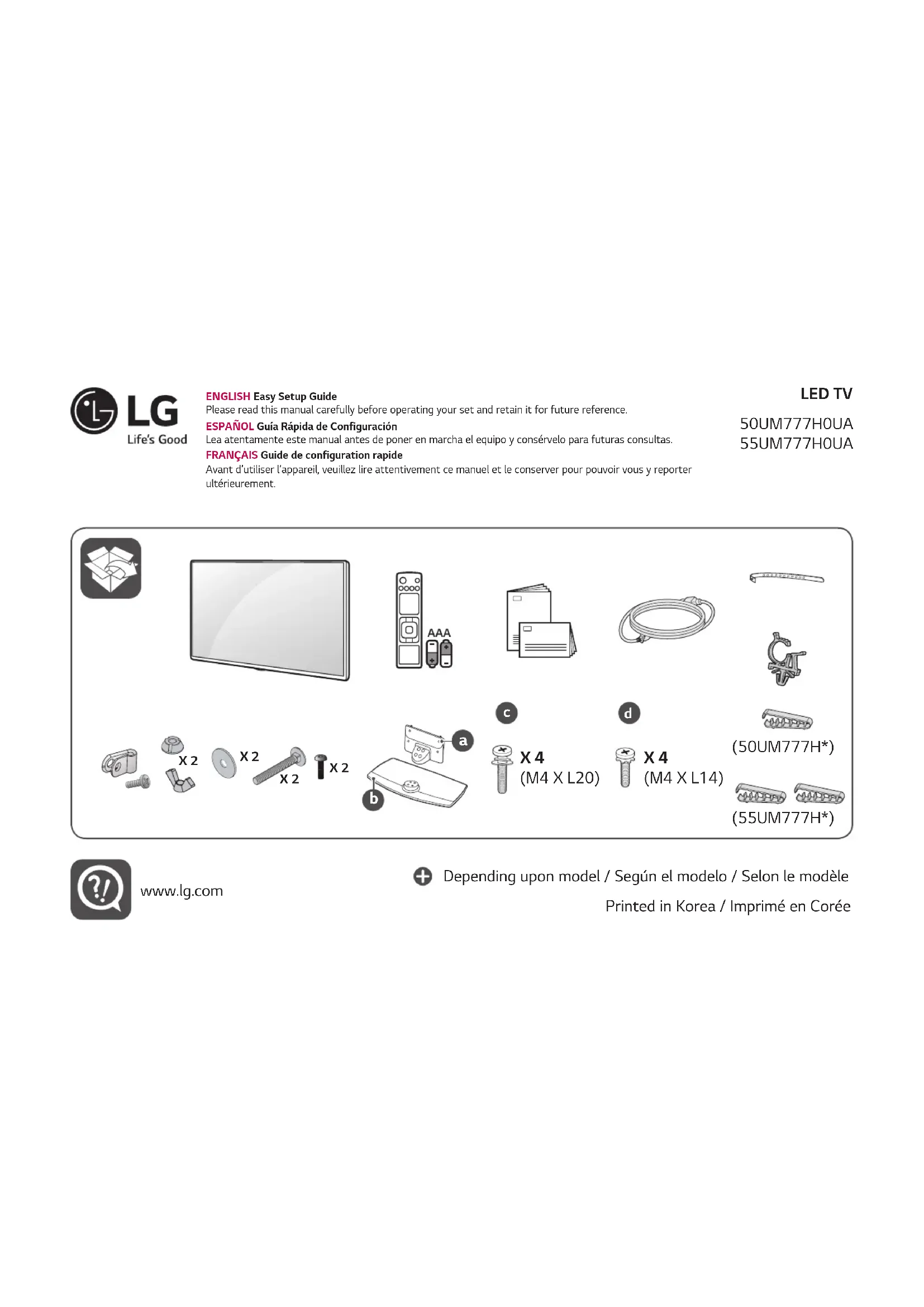 Retrouvez gratuitement la notice de l'appareil 50UM777H0UA LG au format PDF.