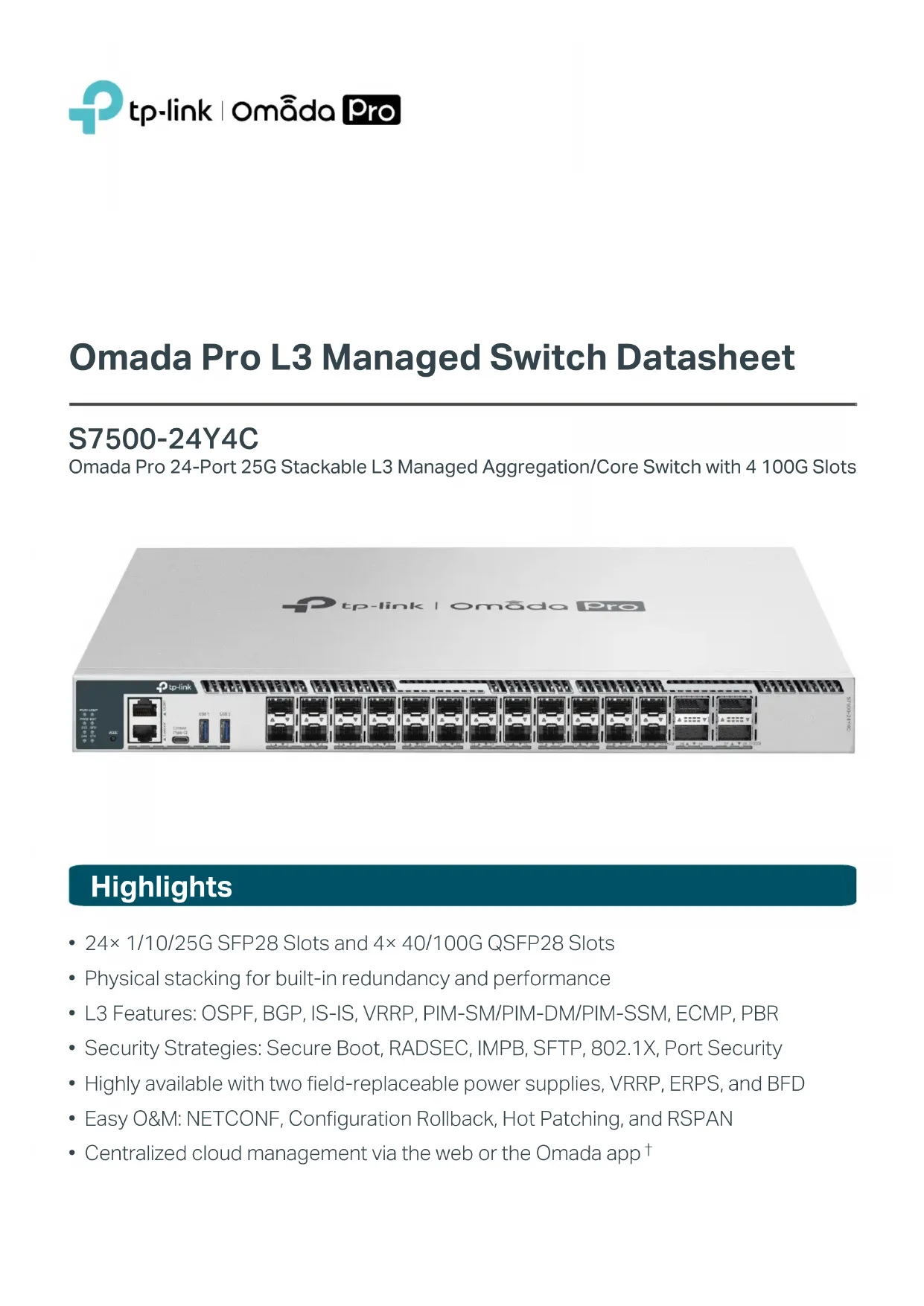 Retrouvez gratuitement la notice de l'appareil S7500-24Y4C TP-LINK au format PDF.