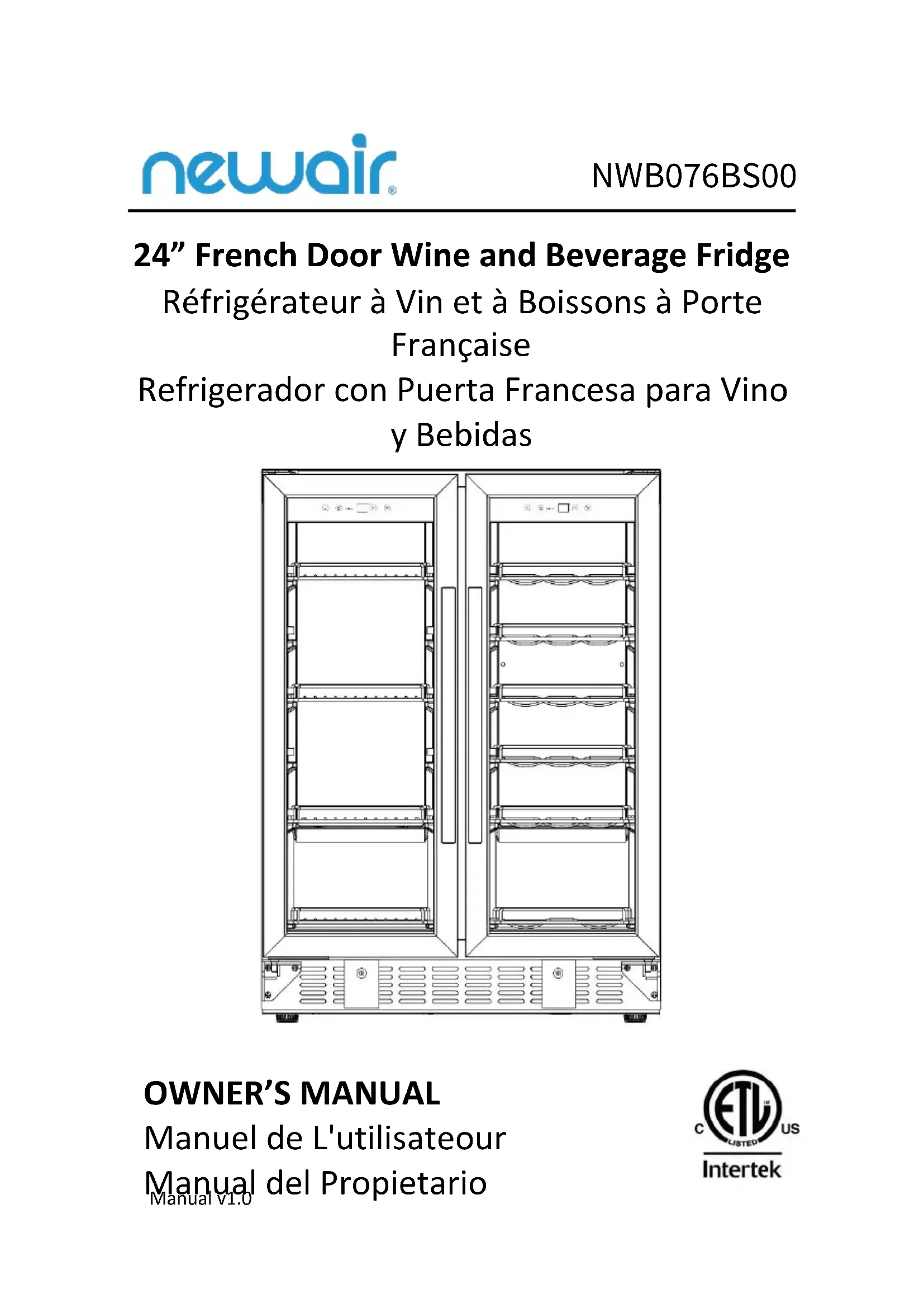 24” French Door Wine and Beverage Fridge Réfrigérateur à Vin et à Boissons à Porte Française Refrigerador con Puerta Francesa para Vino y Bebidas NWB076BS00