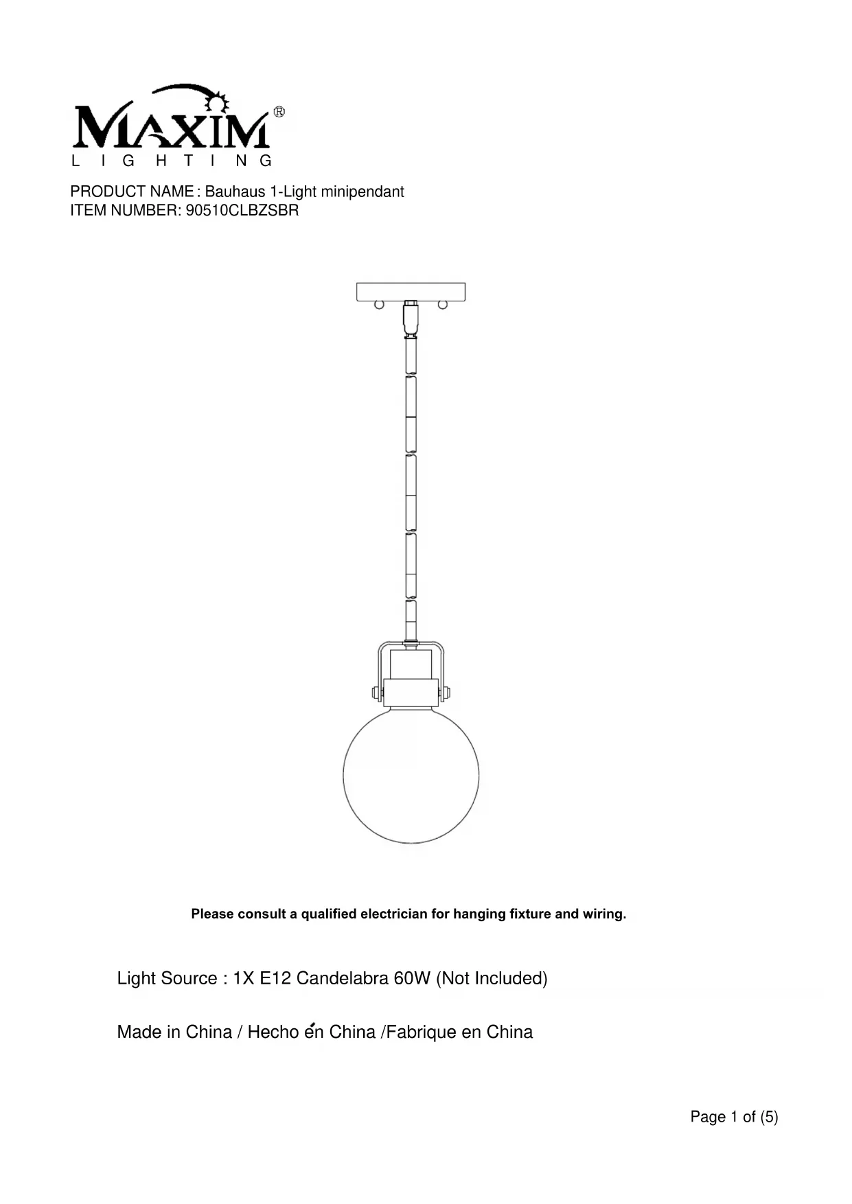 Bauhaus 90510CLBZSBR - Éclairage Maxim - Notice d'utilisation et mode d'emploi gratuit