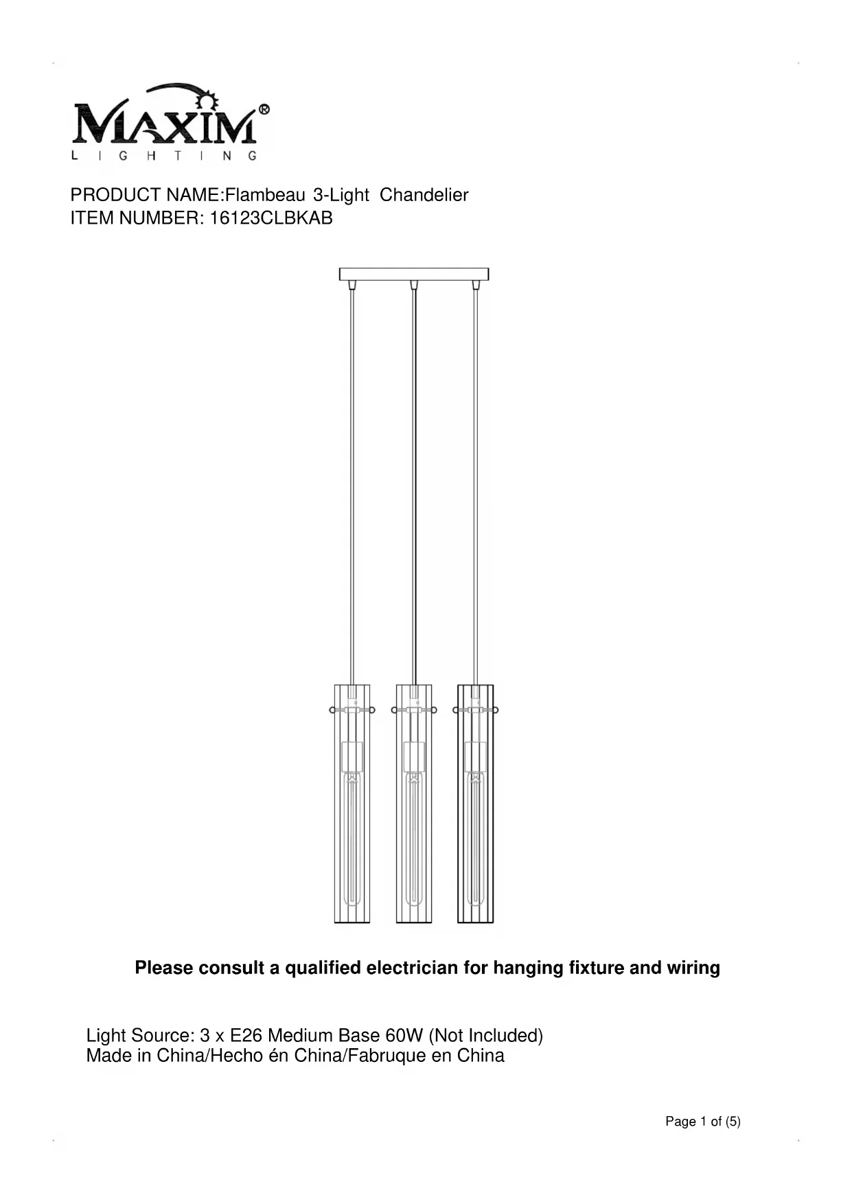 Flambeau 16123CLBKAB - Éclairage Maxim - Notice d'utilisation et mode d'emploi gratuit