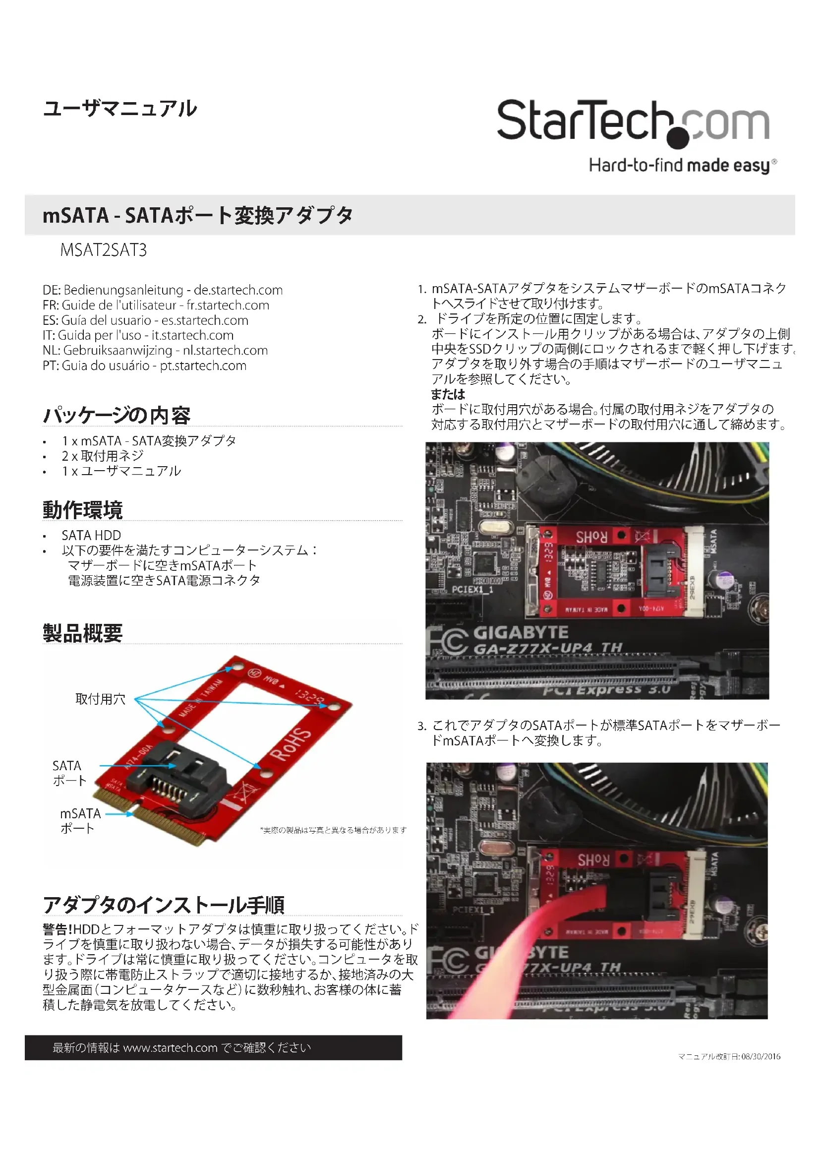 Retrouvez gratuitement la notice de l'appareil MSAT2SAT3 StarTech.com au format PDF.