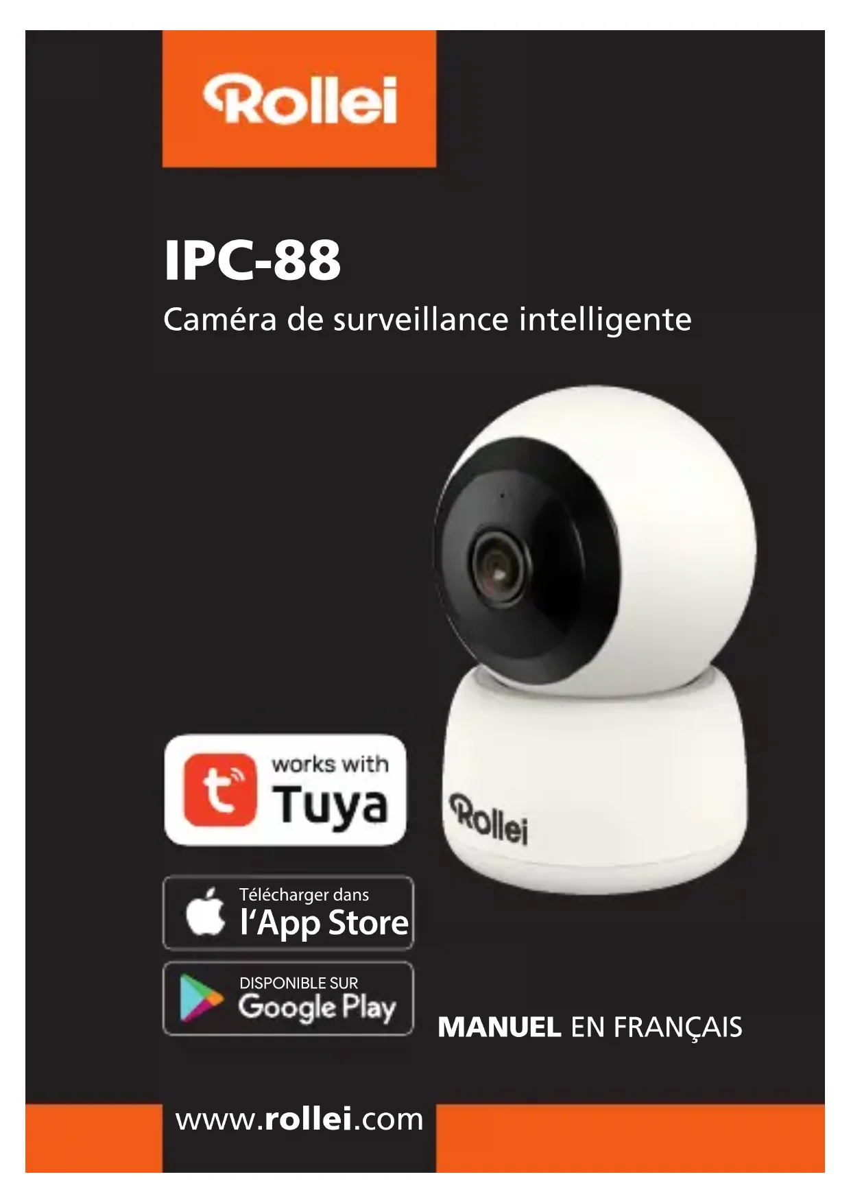 Sécurité Utilisation conforme à la destination La caméra de surveillance est exclusivement conçue comme caméra de surveillance. Elle est exclusivement destinée à un usage privé et ne convient pas à un usage professionnel. N‘utilisez la caméra de surveillance que comme décrit dans ce mode d‘emploi. Toute autre utilisation est considérée comme non conforme et peut entraîner des dommages matériels ou des pertes de données. Le fabricant ou le revendeur n‘assume aucune responsabilité pour les dommages résultant d‘une utilisation non conforme ou incorrecte. Si vous souhaitez connecter votre caméra à votre routeur dans un pays européen, veuillez régler la région de l‘Amérique du Nord (canal 1-11) sur l‘Europe (canal 1-13) après avoir sélectionné votre routeur. La distance minimale entre la caméra et l‘utilisateur est de 25 cm dans le cadre d‘une utilisation normale. WLAN est l‘abréviation de „Wireless Local Area Network“ (réseau local sans fil). Il s‘agit d‘un réseau local sans fil. WLAN peut être utilisé lorsqu‘une transmission de données par câble ne serait pas possible ou seulement à grands frais.31 Elimination Eliminez l‘emballage en respectant le tri sélectif. Utilisez pour cela les possibilités locales de collecte de papier, de carton et d‘emballages légers. (Applicable dans l‘Union européenne et dans d‘autres pays européens disposant de systèmes de collecte sélective des déchets recyclables). Les appareils marqués de ce symbole ne doivent pas être jetés avec les ordures ménagères ! Vous êtes légalement tenu d‘éliminer les appareils usagés séparément des ordures ménagères. Vous obtiendrez des informations sur les centres de collecte qui acceptent gratuitement les appareils usagés auprès de votre ad- ministration communale ou municipale. Conformité Par la présente, Rollei GmbH & Co. KG déclare que le type d‘appareil radio „Rollei IPC-88“ est conforme à la directive 2014/53/UE. Le texte complet de la déclaration de conformité UE est disponible à l‘adresse Internet suivante: www.rollei.com/egk/ipc-88 Rollei GmbH & Co. KG In de Tarpen 42 22848 Norderstedt Allemagnewww.rollei.com Rollei GmbH & Co. KG In de Tarpen 42 D-22848 Norderstedt Service Mail: rollei@teknihall.fr Téléphone: 0970 73 58 04 N° d‘art.: 40527