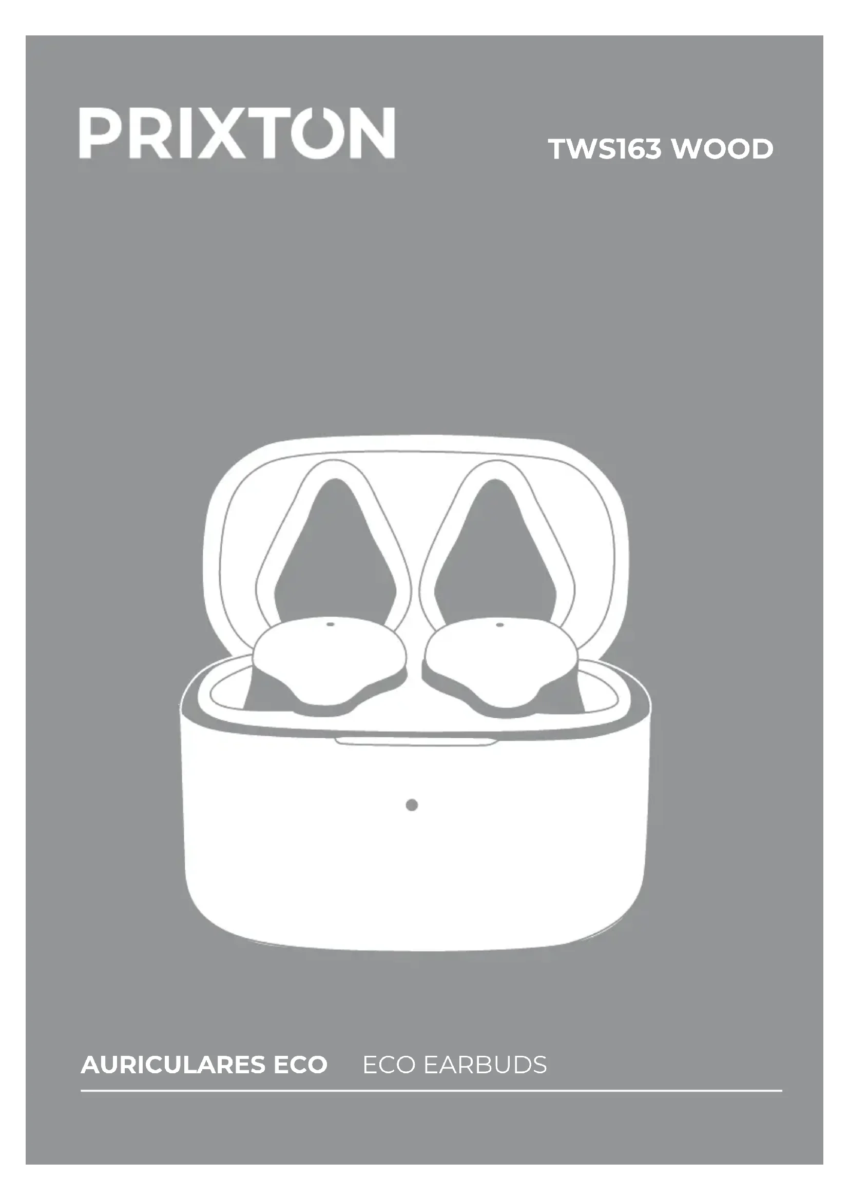 Prixton TWS163 WOOD Eco Earbuds Audio 12FR Accessoires Étui de chargement Embouts Câble de chargement TYPE-C Instructions S M L Écouteurs TWS en bois Port correct Allumer / Éteindre Extinction automatique des écouteurs Allumer : Maintenez la zone tactile (milieu des écouteurs) enfoncée jusqu'à ce que les lumières blanches clignotent. Éteindre : Maintenez la zone tactile (milieu des écouteurs) enfoncée jusqu'à ce que les lumières blanches clignotent.