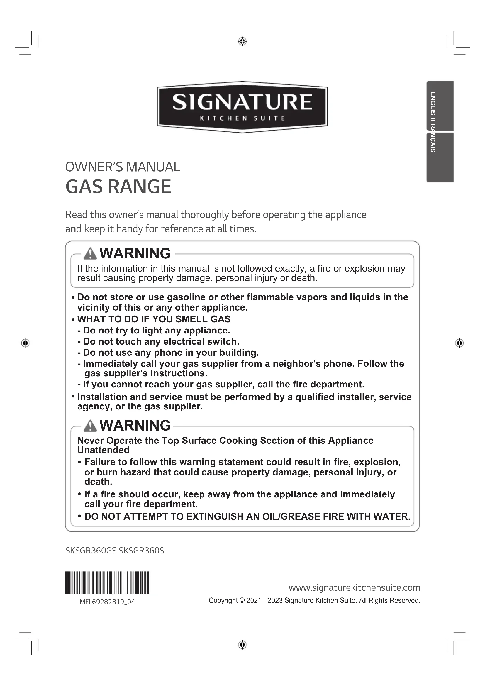 SKSGR360S - Cuisinière SIGNATURE - Notice d'utilisation et mode d'emploi gratuit