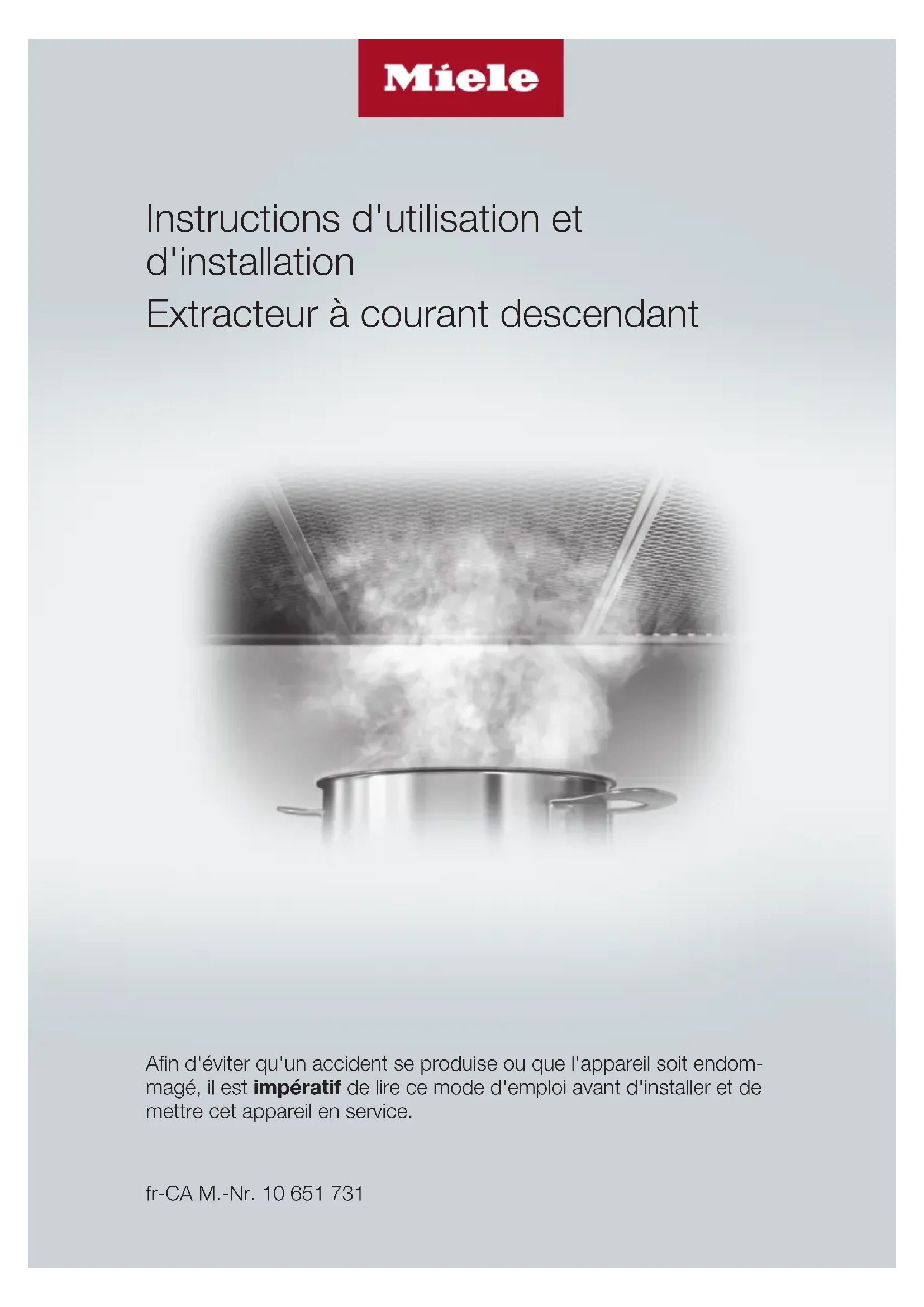 Instructions d'utilisation et d'installation Extracteur à courant descendant Afin d'éviter qu'un accident se produise ou que l'appareil soit endom- magé, il est impératif de lire ce mode d'emploi avant d'installer et de mettre cet appareil en service. fr-CA M.-Nr. 10 651 731Table des matières