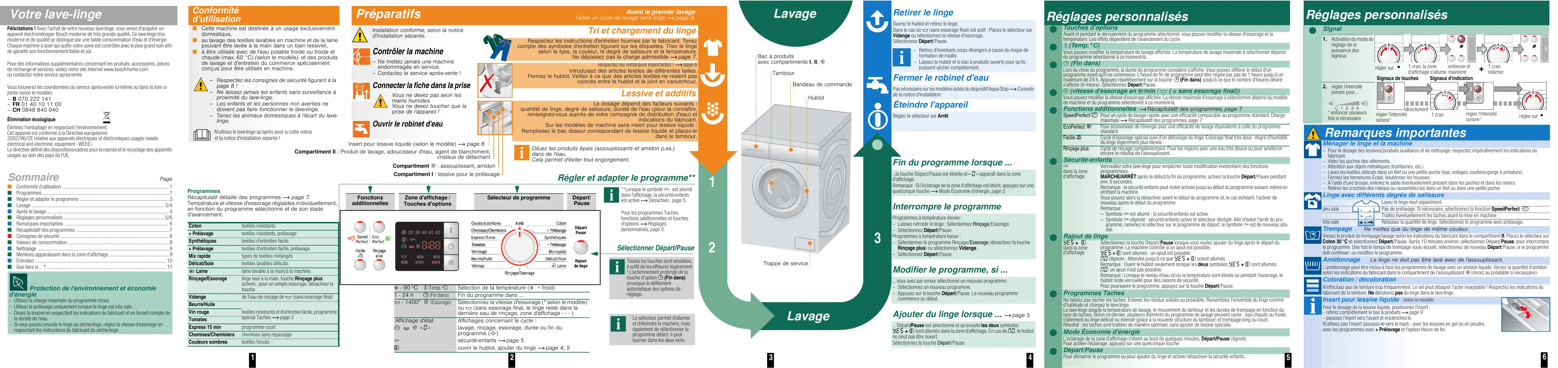 Fe lations ! Avec l'achat de votre nouveau lave-linge, vous venez d'acquérir un appareil électroménager Bosch moderne de très grande qualité. Ce lave-linge très moderne et de qualité se distingue par une faible consommation d'eau et d'énergie. Chaque machine à laver qui quitte notre usine est contrôlée avec le plus grand soin afin de garantir son fonctionnement fiable et sûr.