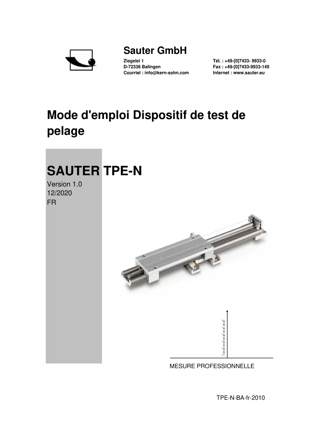 - Nous vous félicitons pour votre achat du banc d'essai SAUTER TPE-N. Nous espérons que vous apprécierez votre système de mesure de qualité avec sa large gamme de fonctions. S'il est utilisé correctement, ce produit de haute qualité vous donnera de nombreuses années de service. Pour toute question, souhait ou suggestion, nous sommes toujours à votre disposition. Table des matières : 1 Fixation du TPE-N sur un banc d'essai TVO-S 1000/2000 p. 3