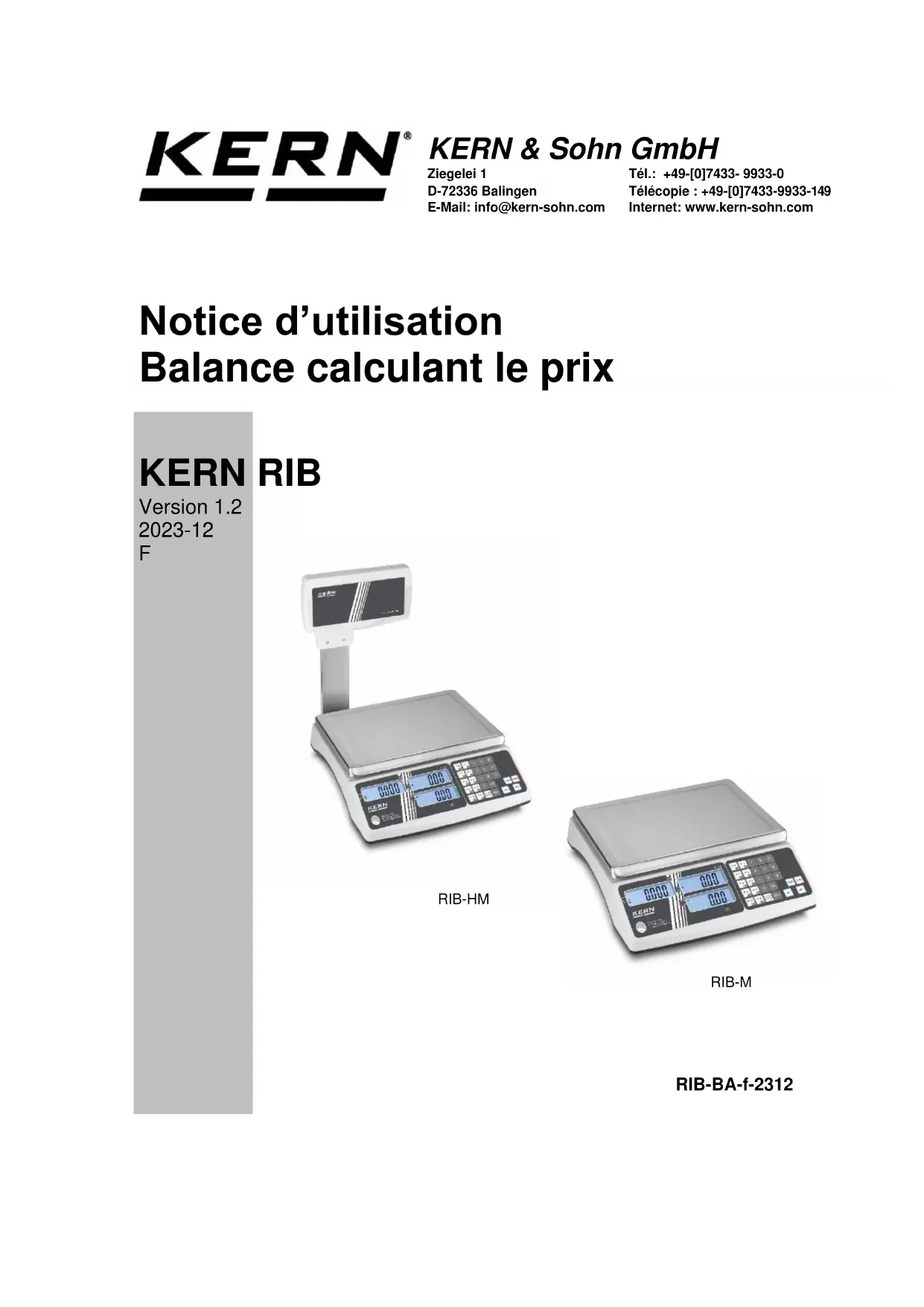 KERN RIB Version 1.2 2023-12 Notice d’utilisation Balance calculant le prix
