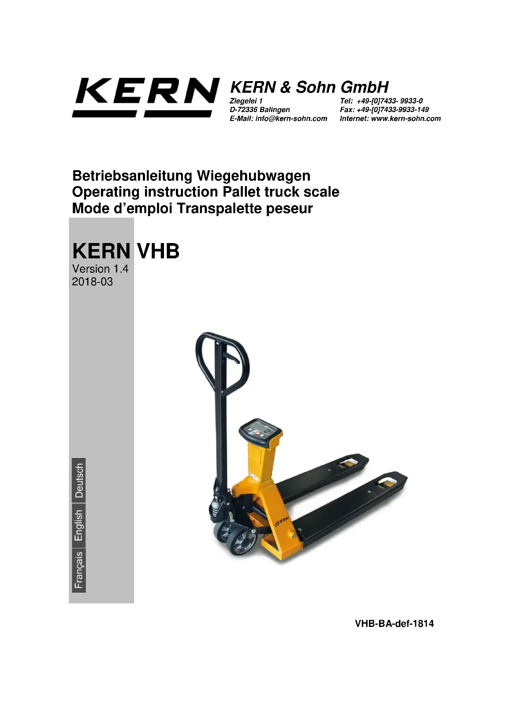 KERN VHB Version 1.4 2018-03 Mode d'emploi Transpalette peseur