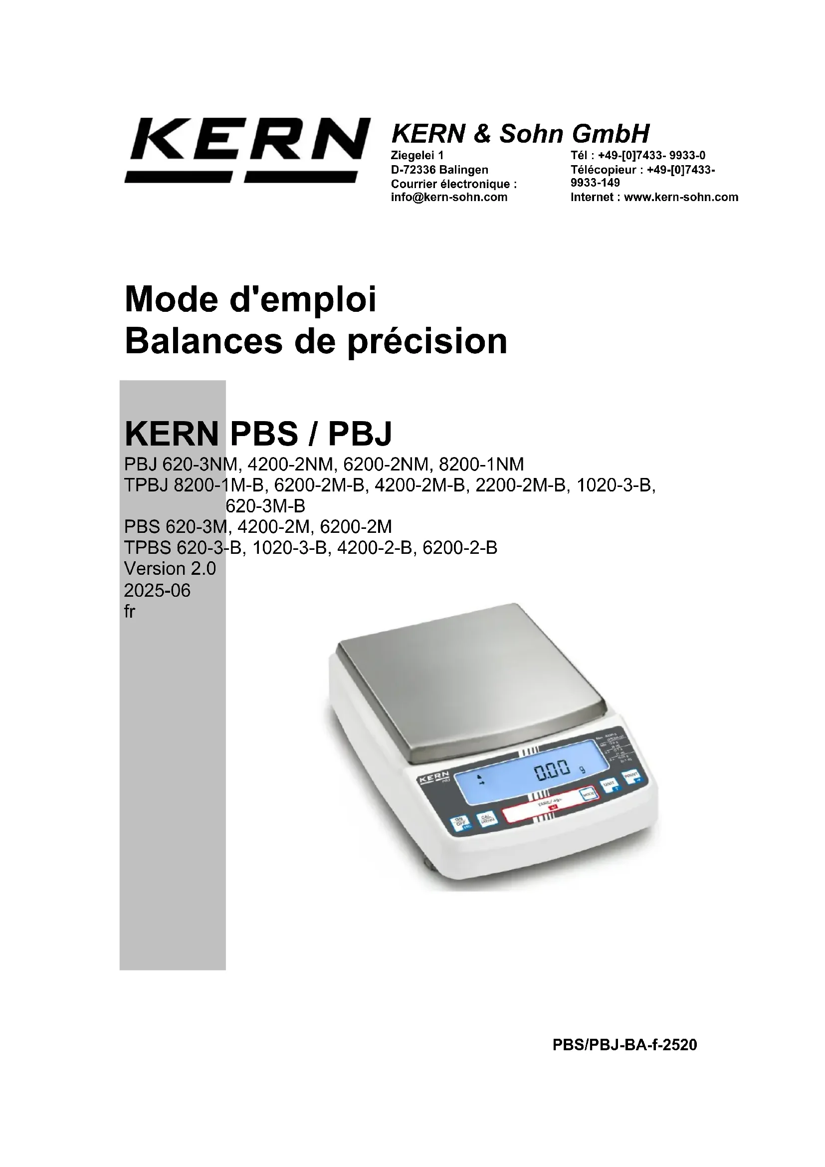 Retrouvez gratuitement la notice de l'appareil PBJ 620-3NM Kern au format PDF.