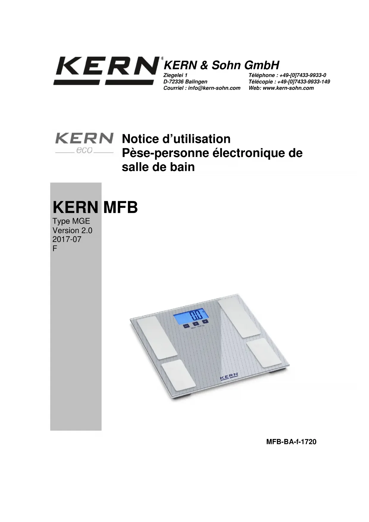 KERN MFB Type MGE Version 2.0 2017-07 Notice d’utilisation Pèse-personnes de salle de bain