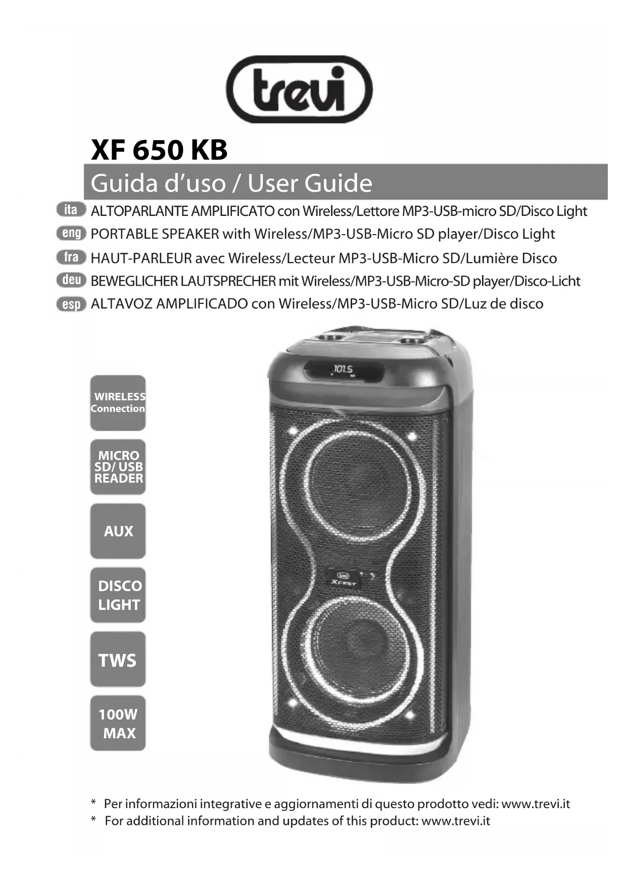 XF 650 KB - Haut-parleur Trevi - Notice d'utilisation et mode d'emploi gratuit
