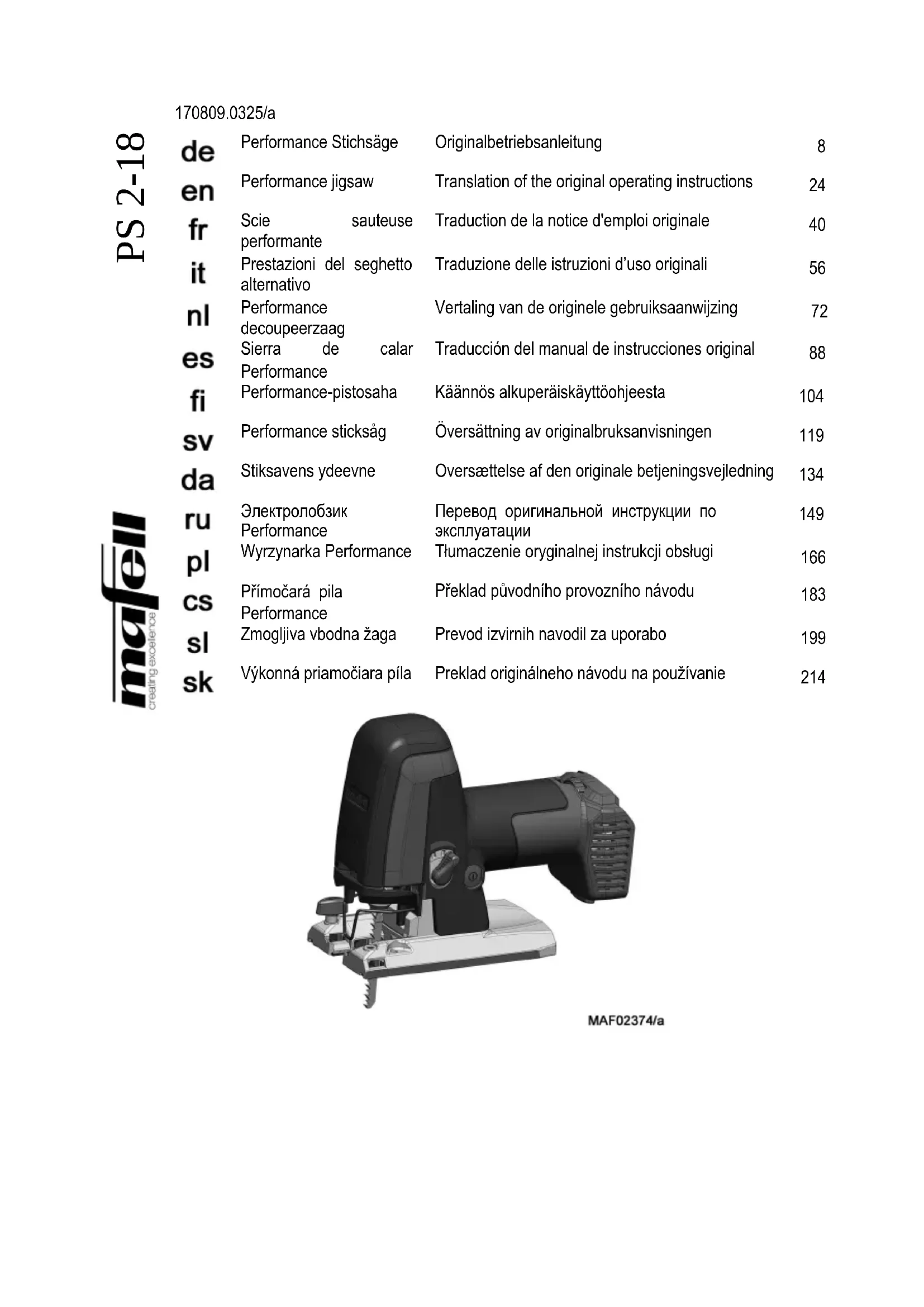 Retrouvez gratuitement la notice de l'appareil PS 2-18 Mafell au format PDF.
