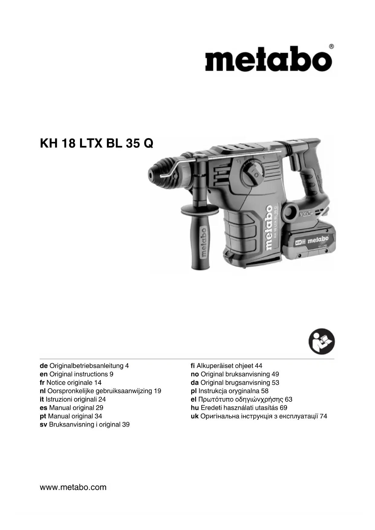 Retrouvez gratuitement la notice de l'appareil KH 18 LTX BL 35 Q METABO au format PDF.