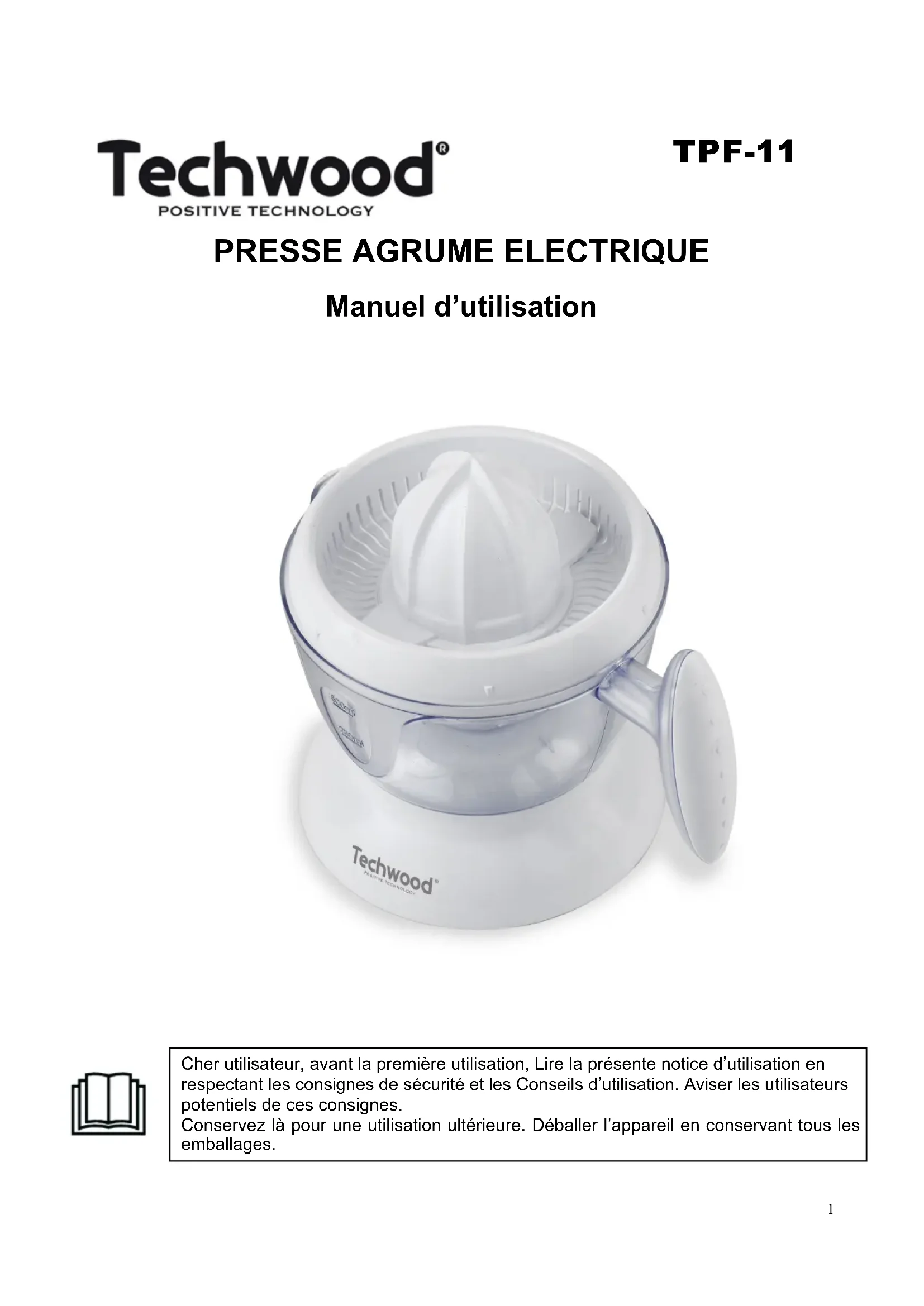 TPF-11 - Extracteur de jus TECHWOOD - Notice d'utilisation et mode d'emploi gratuit