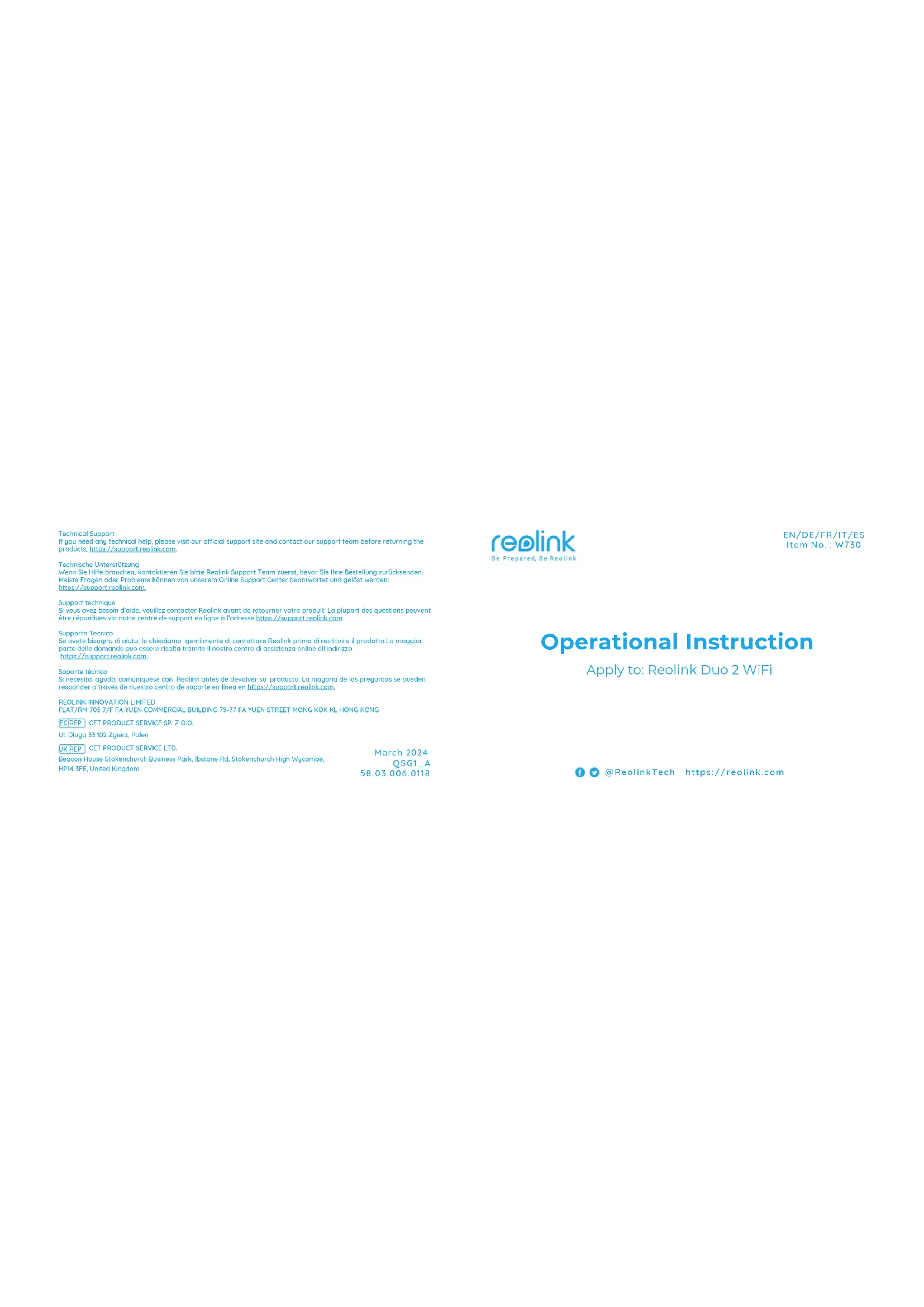 Duo 2 WiFi - Non catégorisé REOLINK - Notice d'utilisation et mode d'emploi gratuit