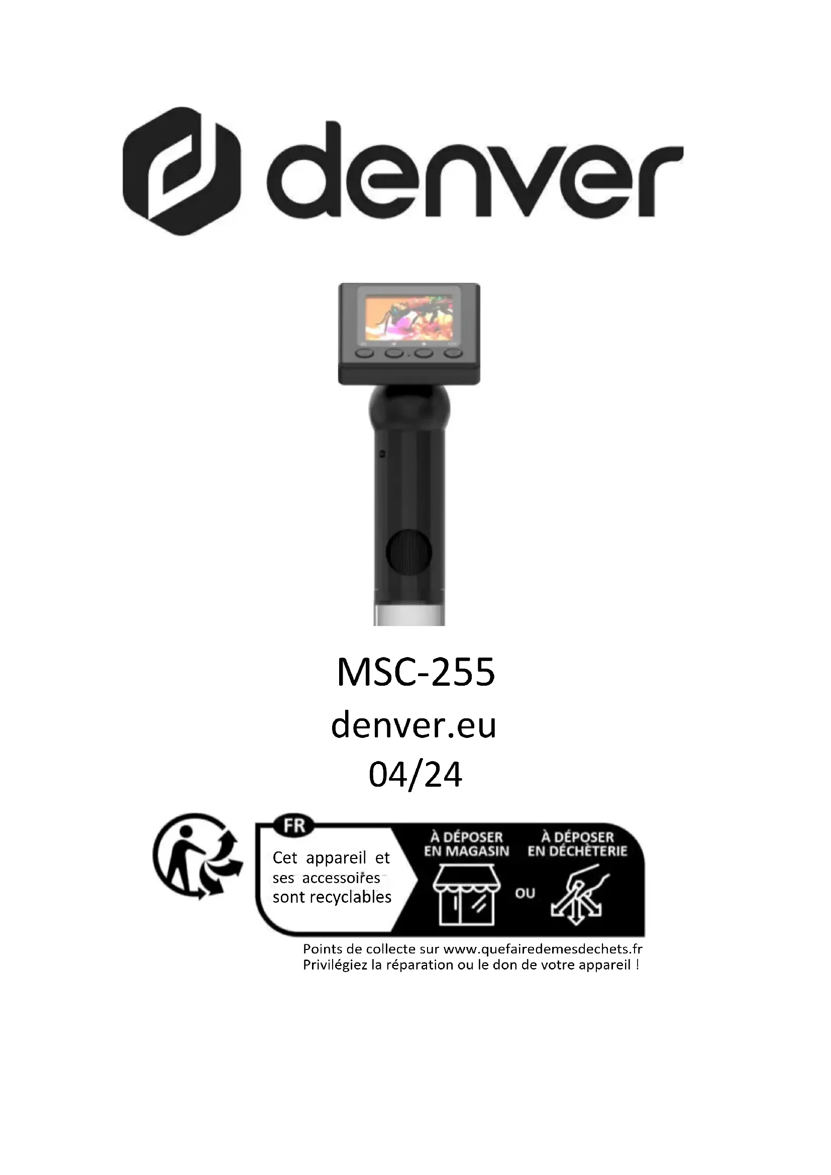 MSC-255 denver.eu 04/24 Points de collecte sur www.quefairedemesdechets.fr Privilégiez la réparation ou le don de votre appareil !Informations sur la sécurité Veuillez lire attentivement les consignes de sécurité avant d'utiliser le produit pour la première fois et conservez-les pour référence ultérieure.