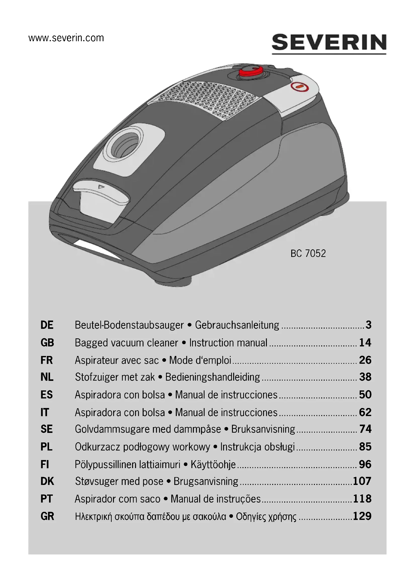 BC 7052 - Aspirateur SEVERIN - Notice d'utilisation et mode d'emploi gratuit