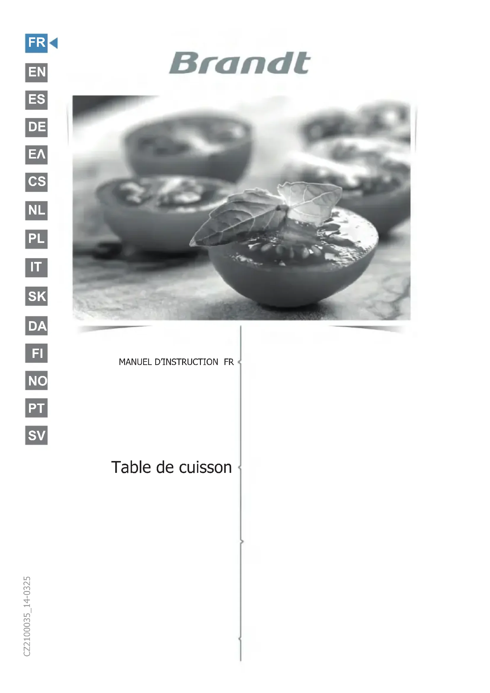 SVImportant : Avant de mettre votre appareil en marche, veuillez lire attentivement ce guide an de vous familiariser plus rapidement avec son fonctionnement. Chère Cliente, Cher Client, Vous venez d’acquérir un produit BRANDT et nous vous remercions de la confiance que vous nous accordez. Nous avons conçu et fabriqué ce produit en pensant à vous, à votre mode de vie, à vos besoins, pour qu’il réponde au mieux à vos attentes. Nous y avons mis notre savoir-faire, notre esprit d’innovation et toute la passion qui nous anime depuis plus de 60 ans. Dans un souci permanent de toujours mieux satisfaire vos exigences, notre service consommateurs est à votre disposition et à votre écoute pour répondre à toutes vos questions ou suggestions. Connectez-vous aussi sur notre site www.brandt.com où vous trouverez nos dernières innovations, ainsi que des informations utiles et complémentaires. BRANDT est heureux de vous accompagner au quotidien et vous souhaite de profiter pleinement de votre achat. https://brandt.fr/ FRTables des matièresTables des matières