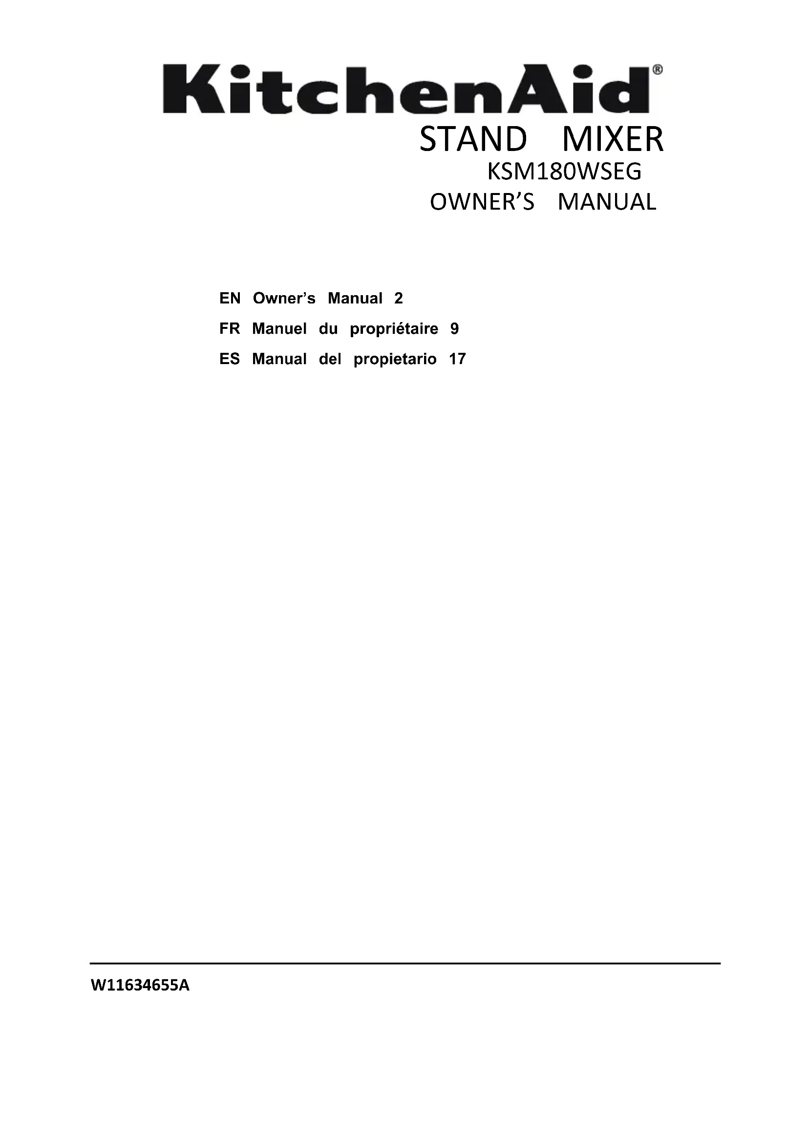KSM180WSEG - Robot ménager KITCHENAID - Notice d'utilisation et mode d'emploi gratuit