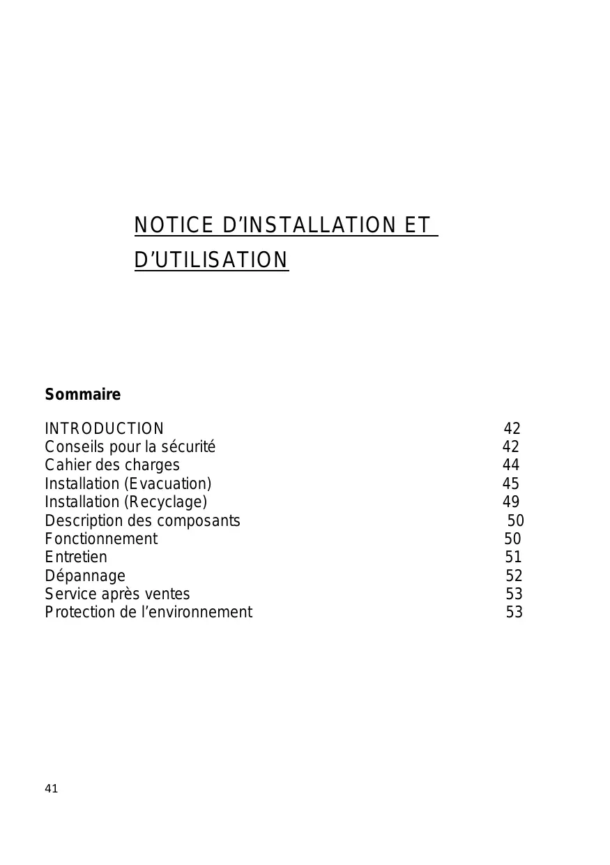 - Cette hotte est dédiée à un usage domestique uniquement. Elle ne doit pas être utilisée pour les barbecues, les rôtisseries ou toutes autres activités