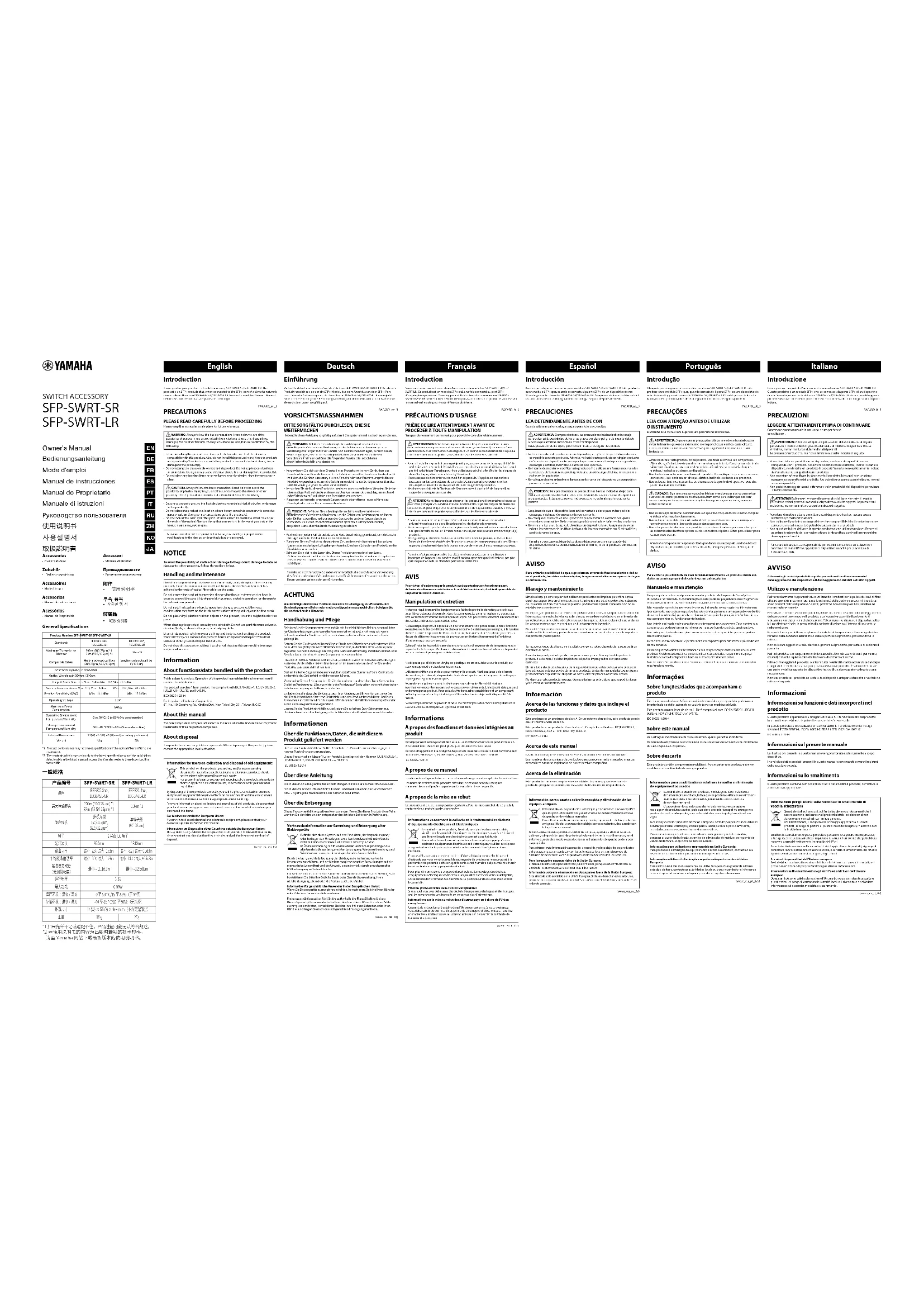 Retrouvez gratuitement la notice de l'appareil SFP-SWRT-SR YAMAHA au format PDF.