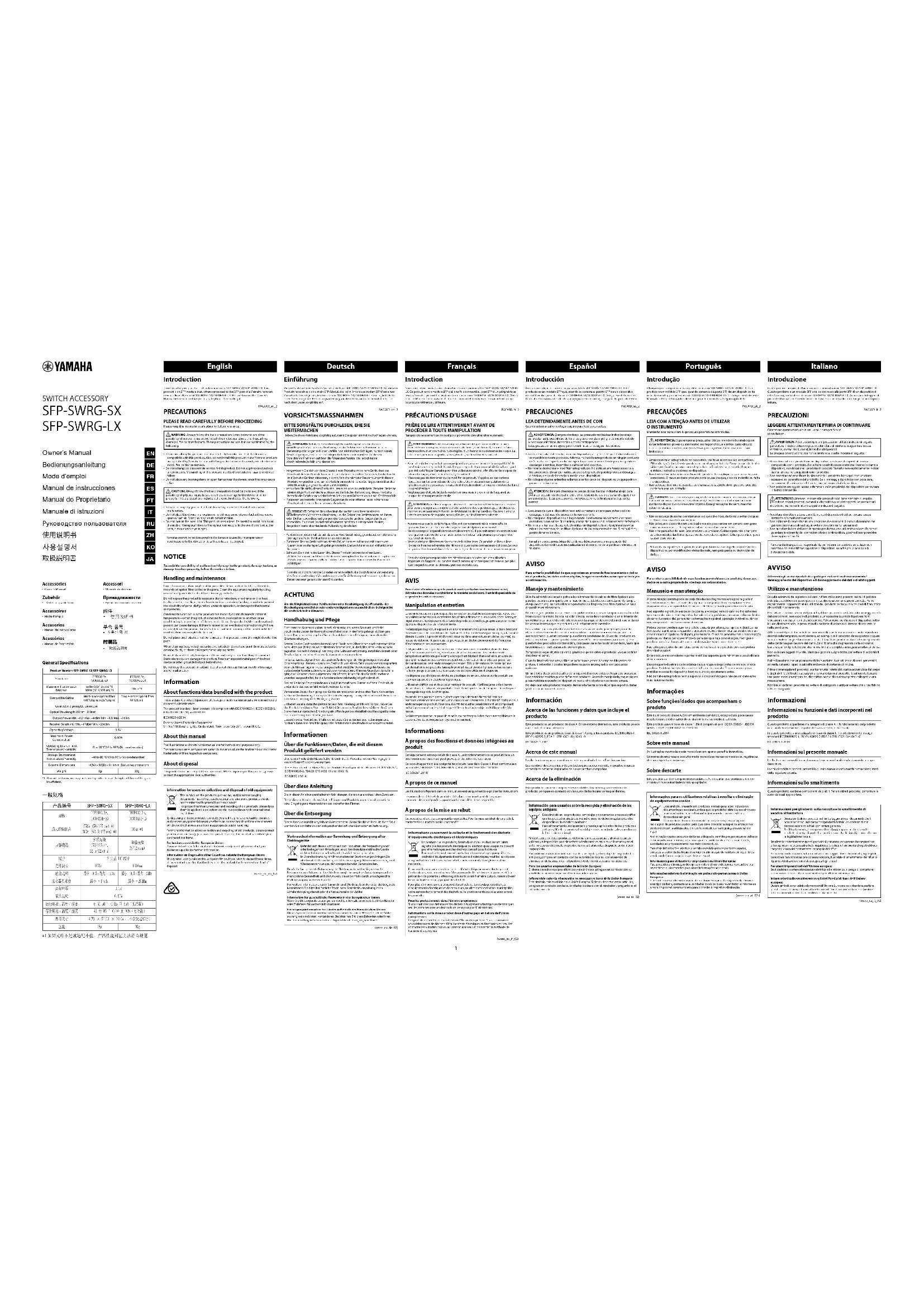 SFP-SWRG-LX - Commutateur YAMAHA - Notice d'utilisation et mode d'emploi gratuit