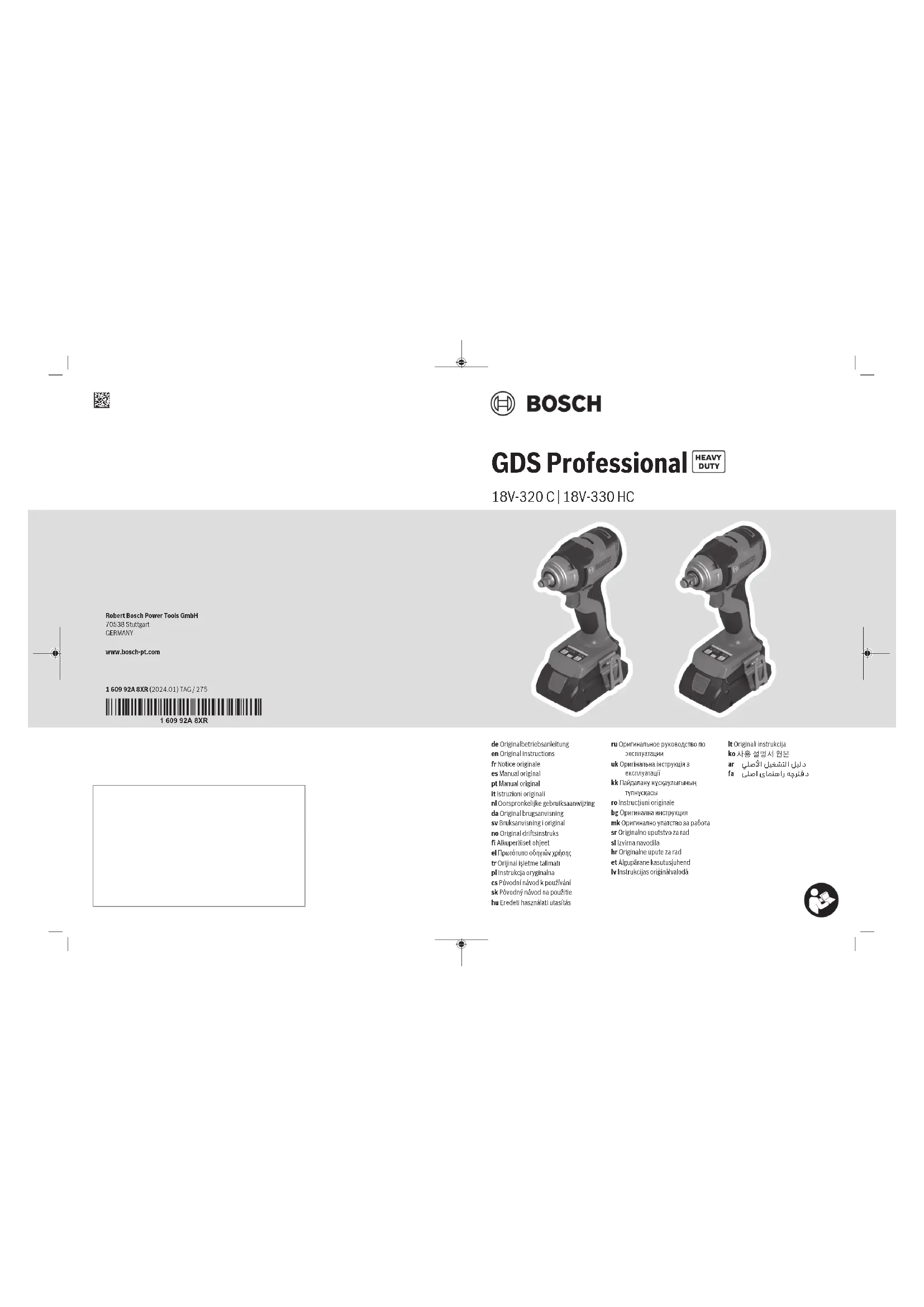 1 609 92A 8XR | (31.01.2024) Bosch Power ToolsFrançais | 25 Visseuse à choc sans fil GDS 18V-320 C GDS 18V-330 HC Rapport signal/bruit s 8 8 Portée de signal maximale