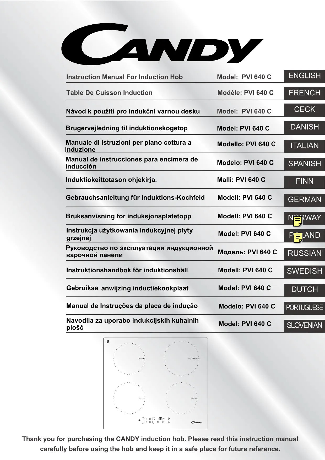 PVI 640 C - Plaque de cuisson induction CANDY - Notice d'utilisation et mode d'emploi gratuit