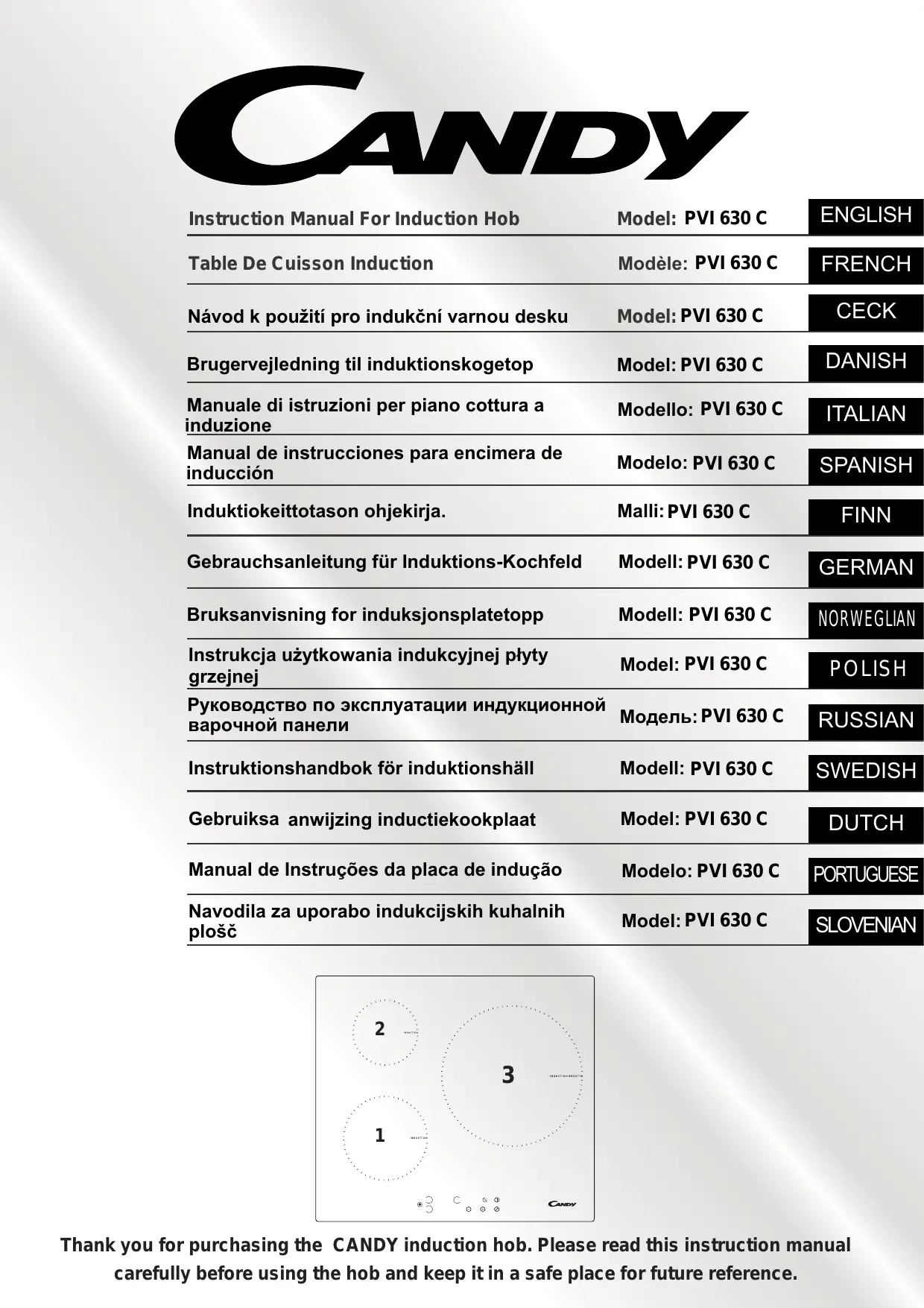 PVI630C - Plaque de cuisson induction CANDY - Notice d'utilisation et mode d'emploi gratuit