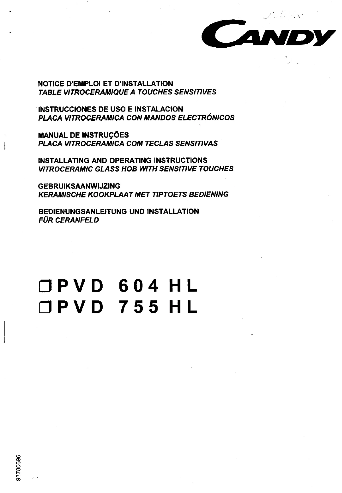 PVD 755 - Plaque de cuisson vitrocéramique CANDY - Notice d'utilisation et mode d'emploi gratuit