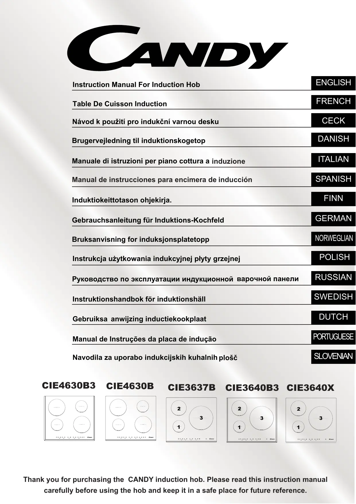 CIE 633 B3/1 - Plaque de cuisson induction CANDY - Notice d'utilisation et mode d'emploi gratuit