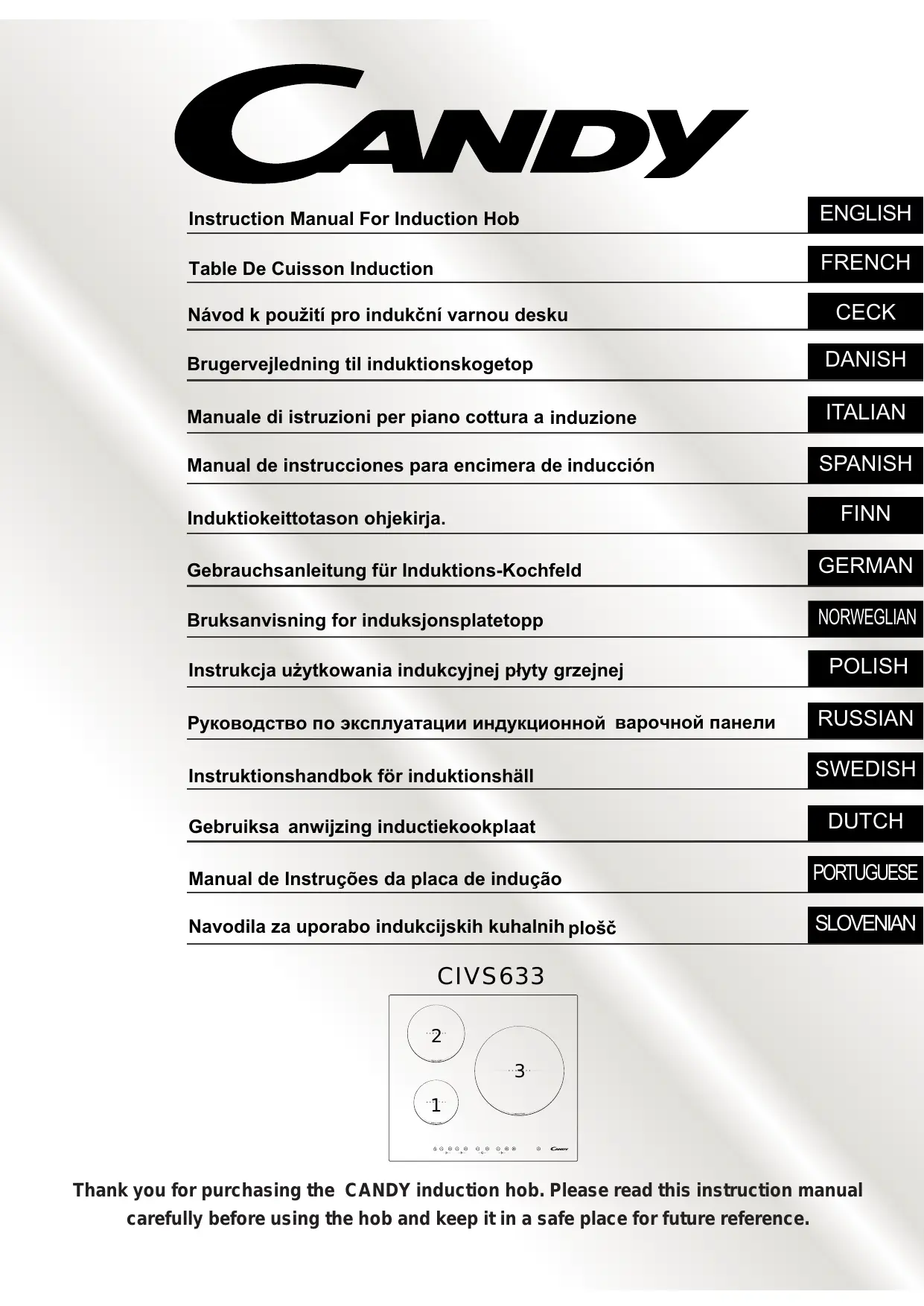 CIVS633 - Plaque de cuisson induction CANDY - Notice d'utilisation et mode d'emploi gratuit