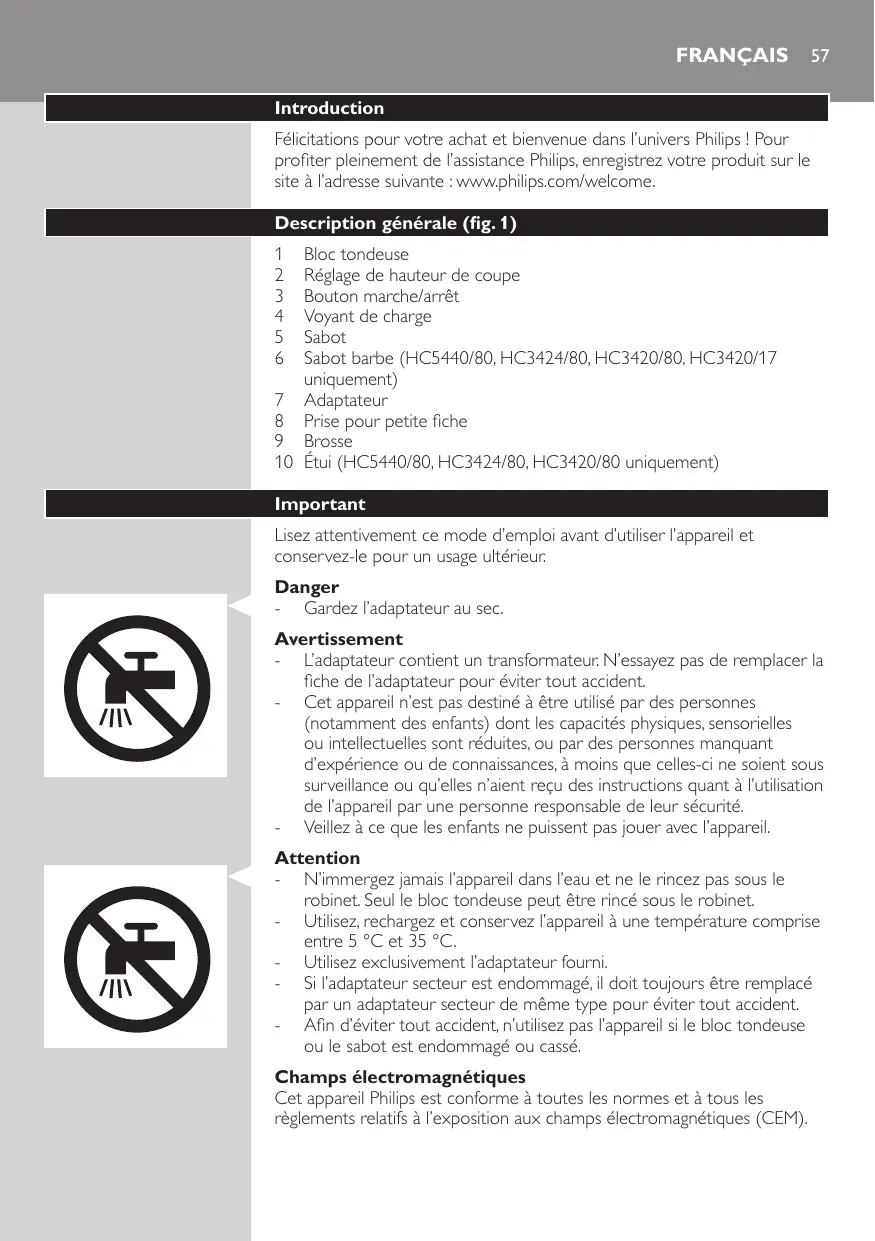 Retrouvez gratuitement la notice de l'appareil HC3424/80 PHILIPS au format PDF.