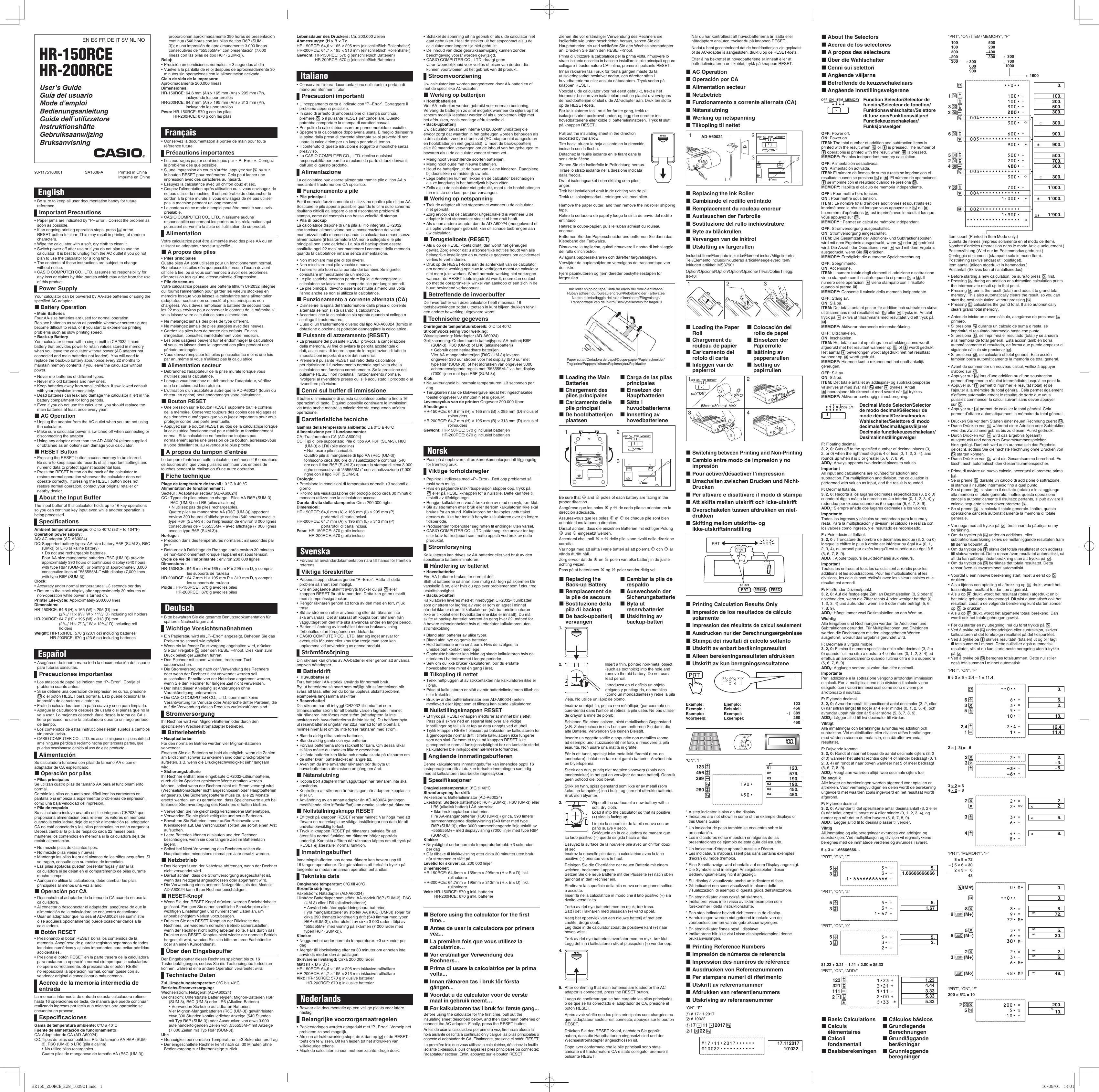 Retrouvez gratuitement la notice de l'appareil HR-150RCE CASIO au format PDF.