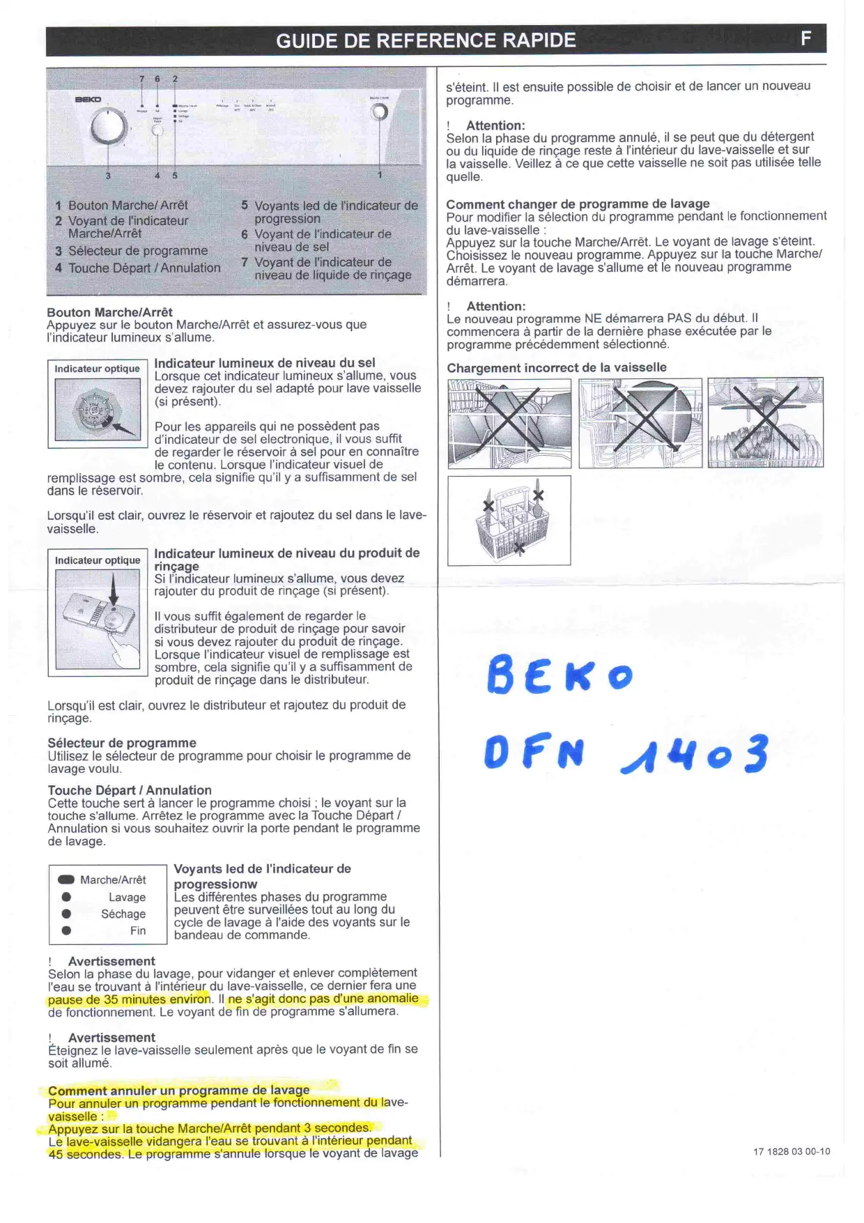Téléchargez la notice de votre Lave-vaisselle au format PDF gratuitement ! Retrouvez votre notice DFN 1403 - BEKO et reprennez votre appareil électronique en main. Sur cette page sont publiés tous les documents nécessaires à l'utilisation de votre appareil DFN 1403 de la marque BEKO.